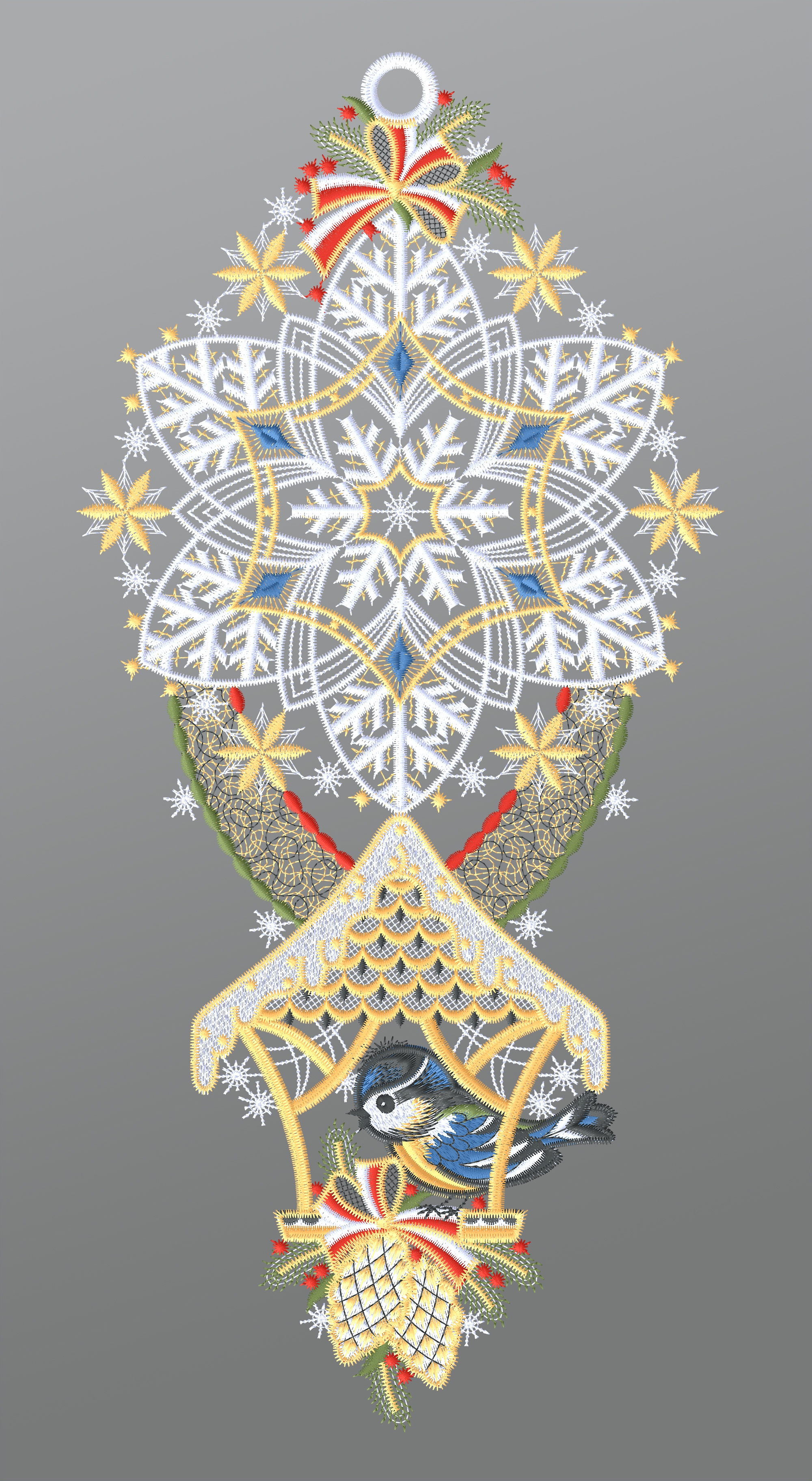 23,95 EURFensterbild aus Plauener Spitze® - Blaumeise mit Weihnachtsstern #1W mehrfarbig