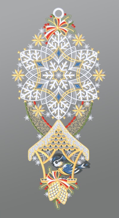 Fensterbild aus Plauener Spitze® - Blaumeise im Vogelhäuschen #1W mehrfarbig