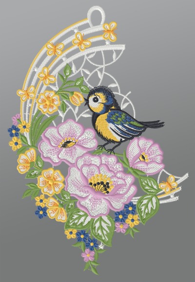 Fensterbild aus Plauener Spitze® - Blumenbouquet #1W mehrfarbig