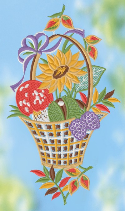 Fensterbild aus Plauener Spitze® - Herbstkörbchen #1W mehrfarbig