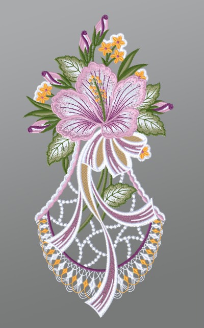 Fensterbild aus Plauener Spitze® - Hibiskus mit Schleife #1W mehrfarbig