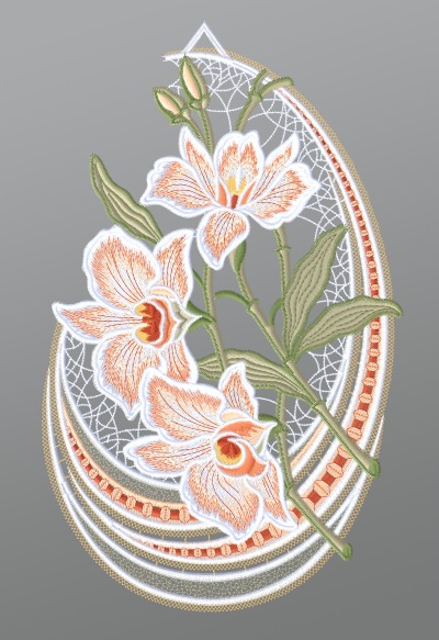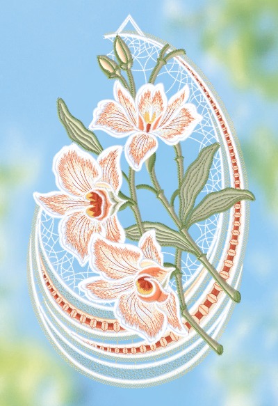 Fensterbild aus Plauener Spitze® - Orchideen mit Designbogen #1W mehrfarbig