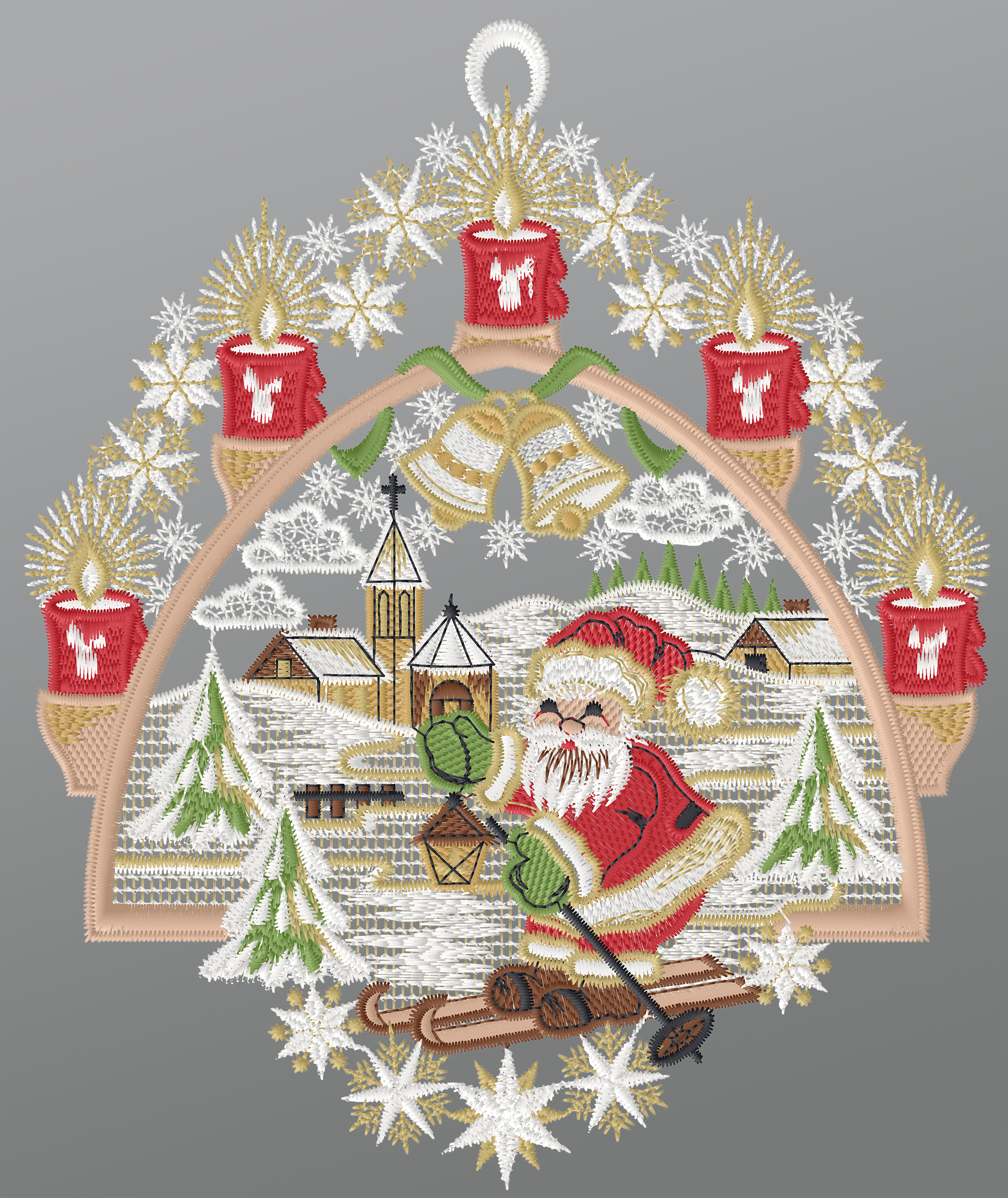 Fensterbild aus Plauener Spitze® - Weihnachtlicher Schwibbogen #1W mehrfarbig