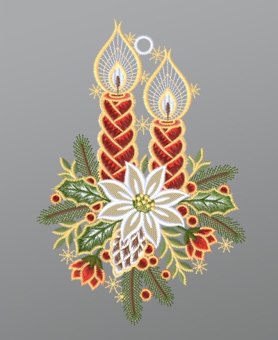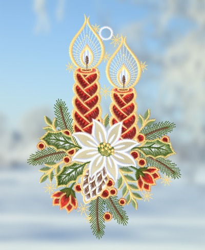Fensterbild aus Plauener Spitze® - Weihnachtskerzen #1W mehrfarbig