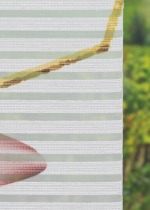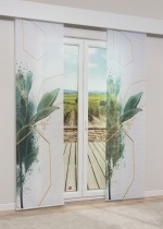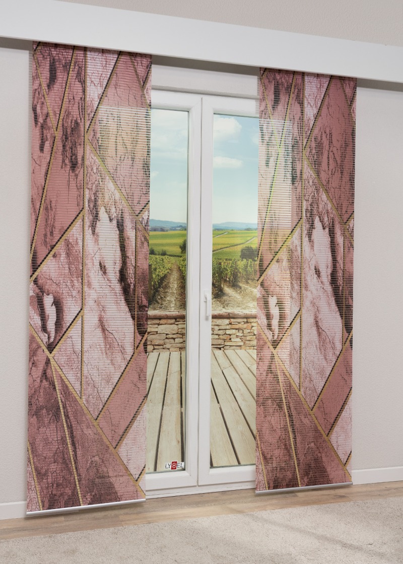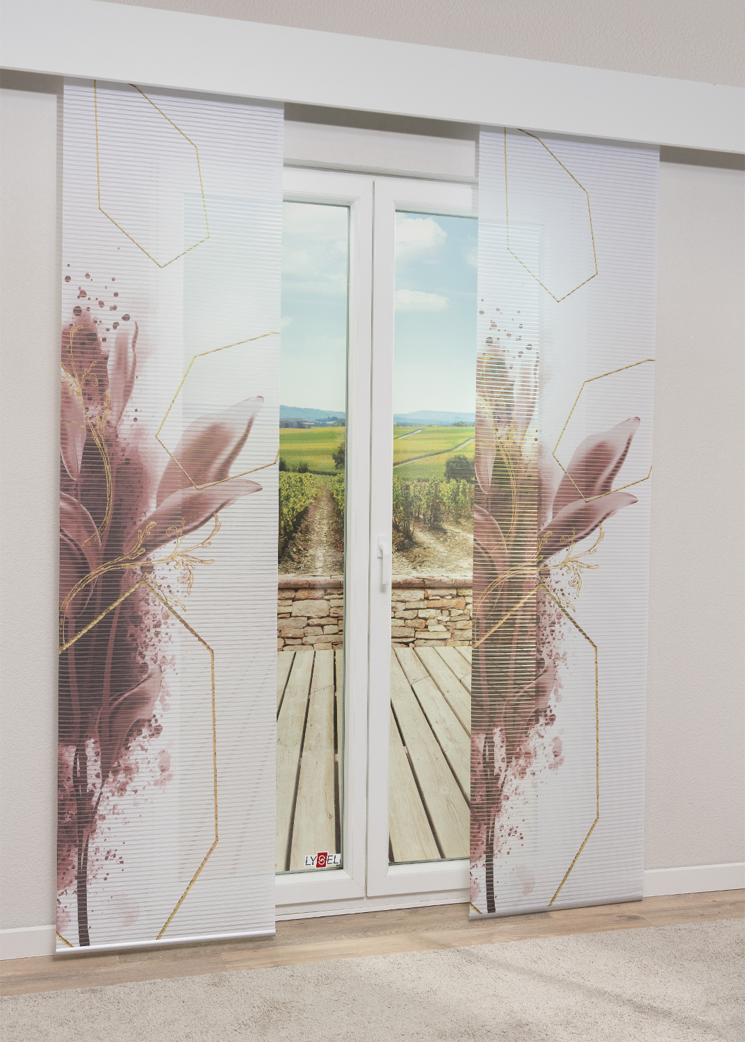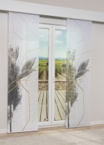 - Eine Schiebegardine aus halbtransparentem Stoff