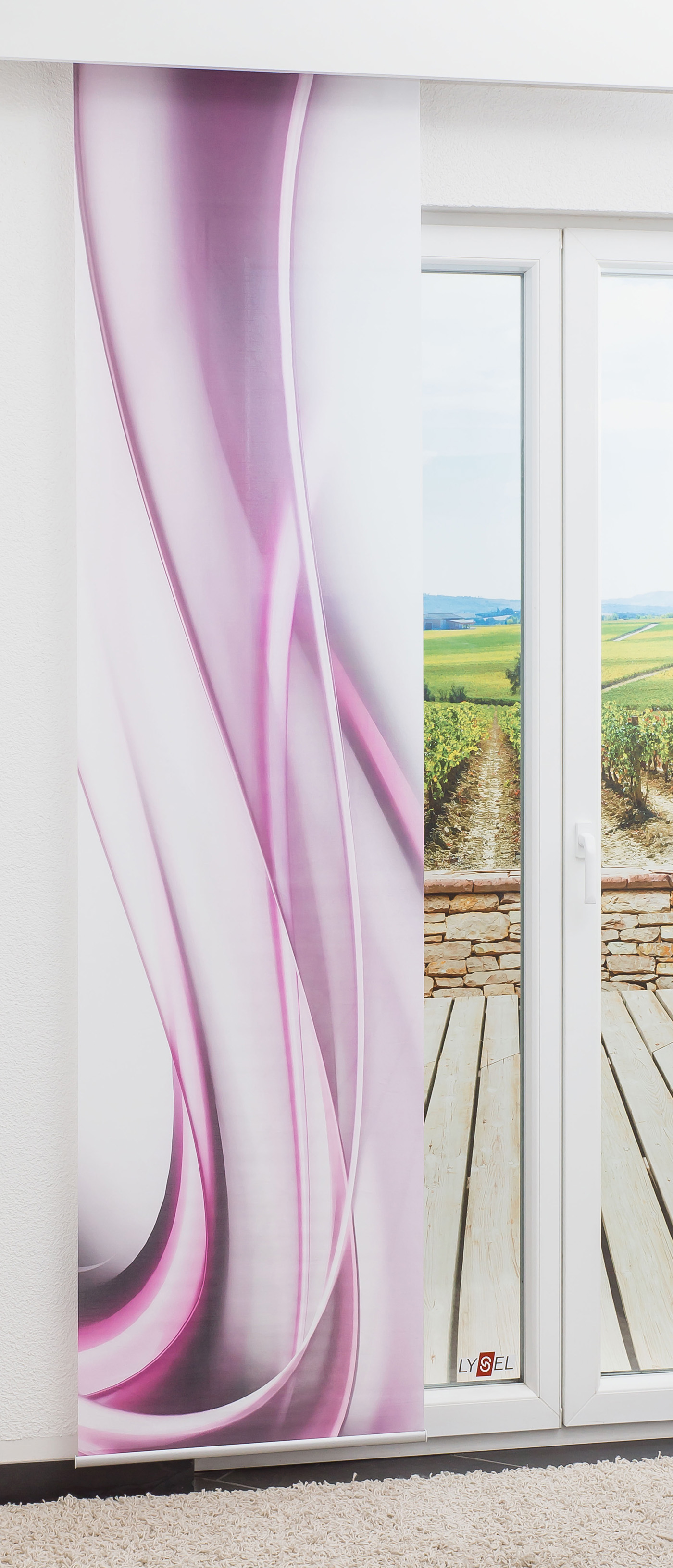 Das Design dieser Schiebegardine erinnert an weiße Farbe, welcher gerade ein zweiter Ton, hier Beere, beigemischt wird. Vielleicht kommen auch Gedanken an ein erfrischend-fruchtiges Joghurt-Eis in den Sinn. Extravagant und außergewöhnlich ist dieser Behang ein echtes Highlight am Fenster. Damit zeigen Sie, dass Sie sich bei der Gestaltung Ihres Wohnambiente mutig über konventionelle Looks hinwegsetzen.