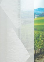 Bei diesem Vorhang steht neben seiner eleganten Erscheinung vor allem das kreativ gestaltete geometrische Muster im Blickpunkt: Dreiecke, die jeweils in entgegengesetzte Richtungen weisen und eine fast ausgefranste Basisseite haben, harmonieren perfekt mit dem Stoffhintergrund und betonen die moderne Ausstrahlung des Vorhangs. Die Transparenz des nach Oekotex Standard 100 zertifizierten Polyestergewebes ist ein weiterer dekorativer sowie praktischer Aspekt. Sie ermöglicht, dass Räume lange mit Tageshelligkeit verwöhnt werden, während blendende Sonnenstrahlen abgemildert werden und eine sanftere Wirkung entfalten. Dadurch passt der Schiebevorhang auch ideal in Umgebungen, die aufgrund ihrer Lage normalerweise nur wenig Tageslicht erhalten. Zur Befestigung an der Schiene wird das im Lieferumfang enthaltene Klettband verwendet. Den Paneelwagen sowie einen Beschwerungsstab bekommen Sie ebenfalls bei Bestellung. Für die Reinigung verwenden Sie einfach den Schonwaschgang in der Maschine. Wenn Sie den Vorhang kürzen möchten, steht Ihnen unser Konfektionsservice gern zur Verfügung.