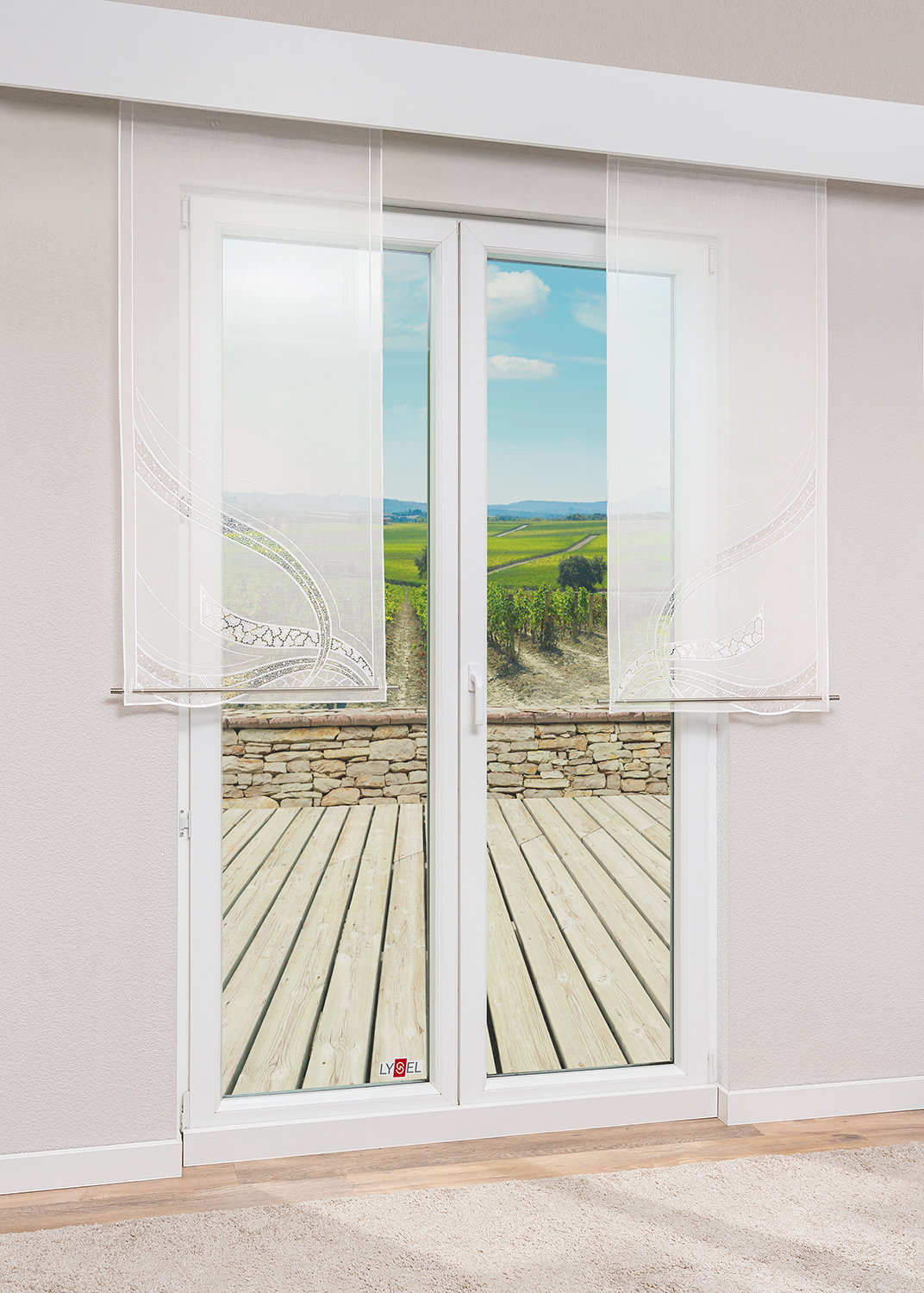 Plauener Spitze® - Schiebegardine Alkiza #1W in Rohweiß