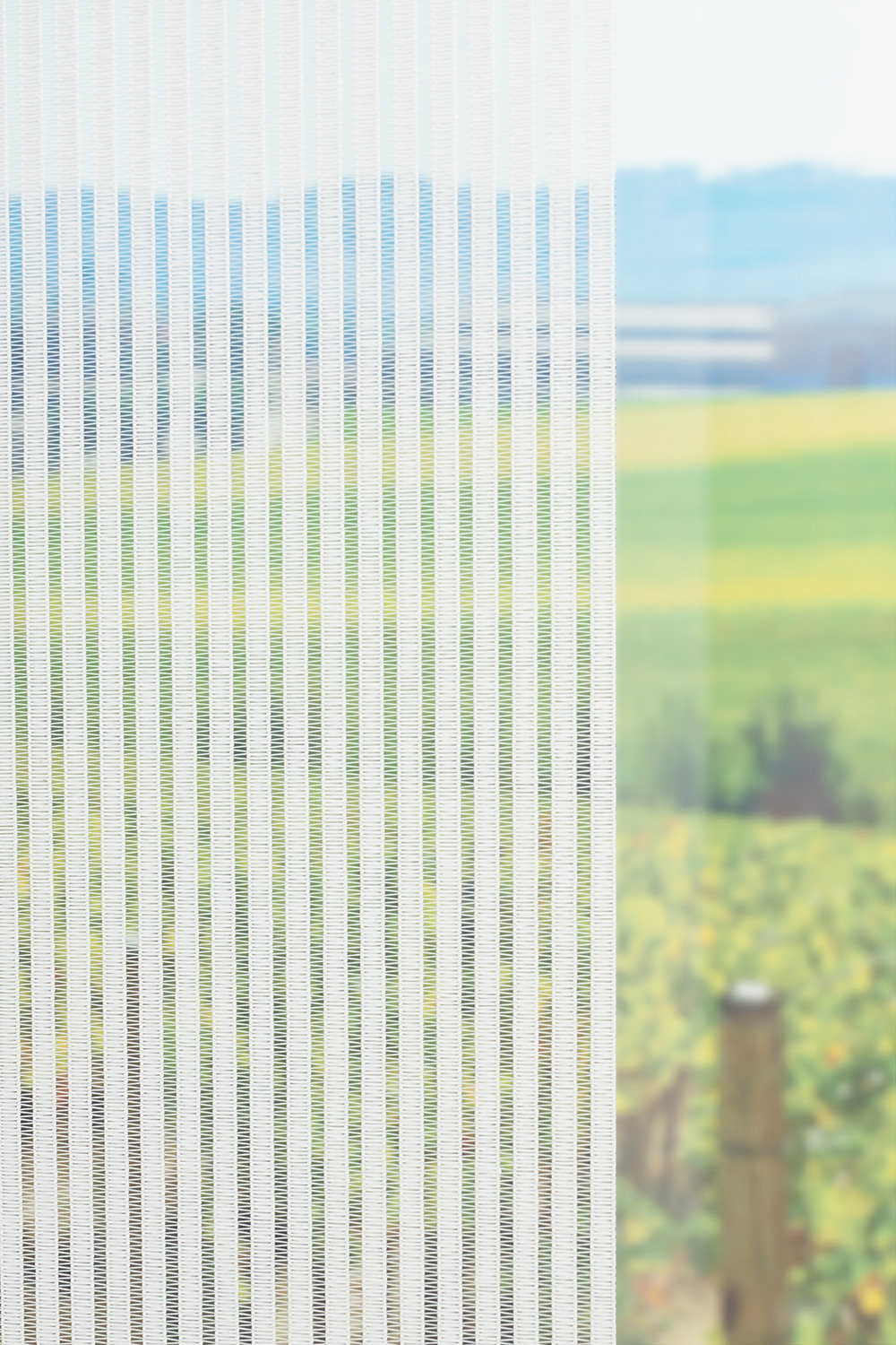 Der in feine, senkrechte Streifen gewebte Stoff dieser Flächengardine betont den modernen und klaren Stil Ihrer Fensterdekoration. Er ist sehr licht- und sichtdurchlässig und somit eine wunderbare Lösung für Fensterfronten mit einer schönen Aussicht, die keinen besonderen Sichtschutz nötig haben. Dieses Design ist in 4 Farbtönen erhältlich und kann gut mit anderen blickdichten oder gemusterten Flächenvorhängen aus unserem Sortiment kombiniert werden.