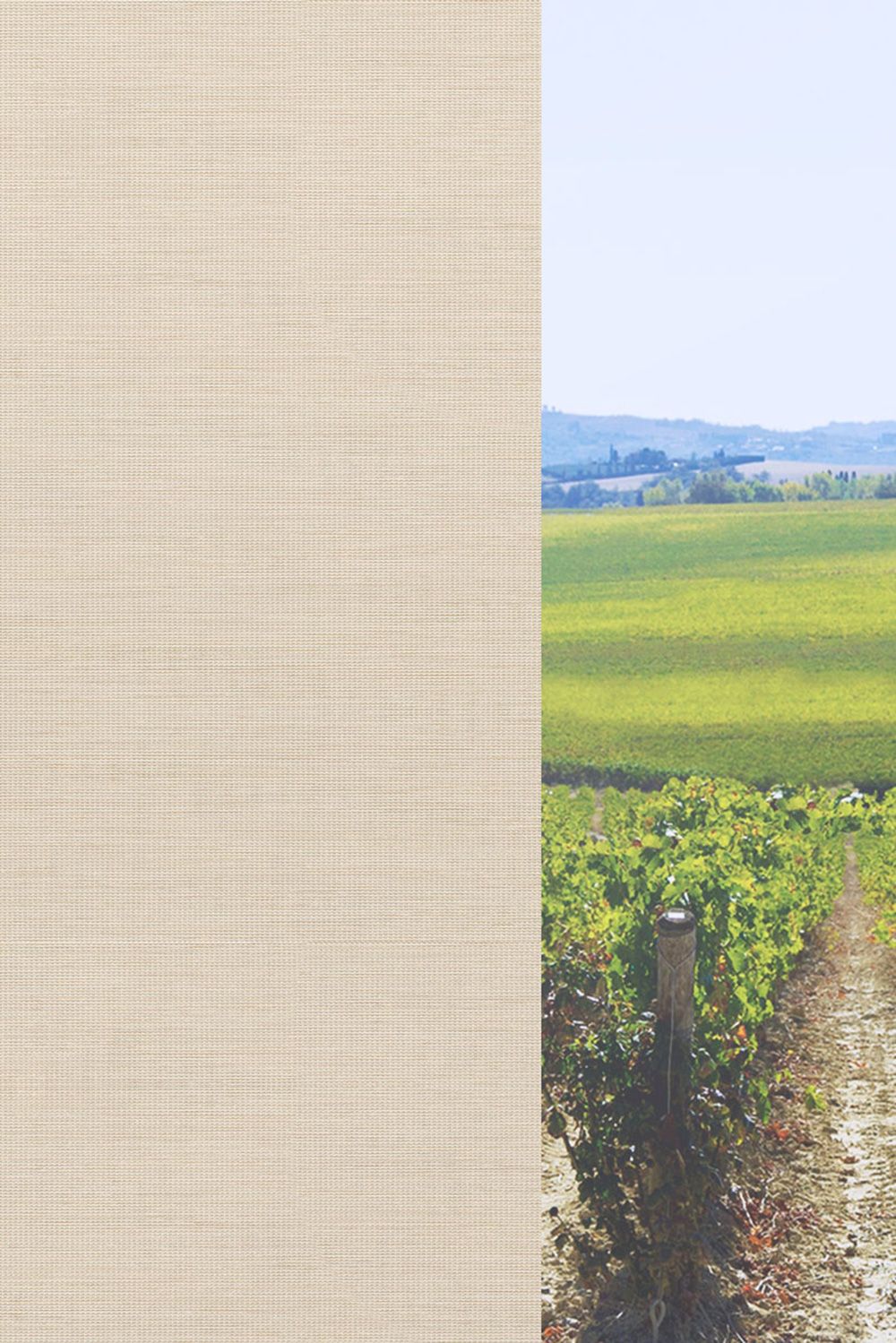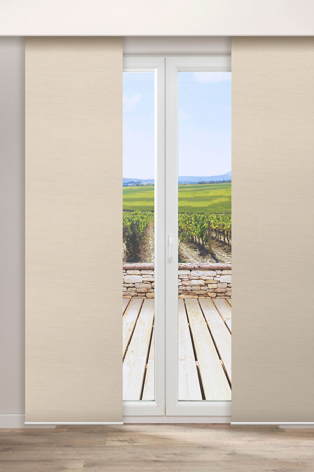 Die lebendige, abwechslungsreiche Struktur dieses Flächenvorhangs erinnert an einen flachgewebten Teppich, wobei man die Oberfläche auch als unregelmäßiges, waagerecht angelegtes Streifendesign beschreiben könnte. In jedem Fall sorgt der Flächenvorhang optisch für Abwechslung, die praktischen Eigenschaften des Gewebes verbessern das Wohngefühl. Der Verdunklungs-Flächenvorhang zeichnet sich außerdem durch eine farblich angepasste Beschichtung auf der Rückseite aus, das Polyestergewebe wird dadurch vollkommen lichtundurchlässig. Sie können die Tageshelligkeit jederzeit aussperren, dem Raum eine geschützte, behagliche und traute Atmosphäre geben. Dazu trägt auch der zuverlässige Sichtschutz bei, der bei geschlossenem Flächenvorhang tagsüber wie nachts gegeben ist. Als Blendschutz für den Bildschirmarbeitsplatz leistet der Flächenvorhang ebenfalls gute Dienste. Die Voraussetzung für die Verwendung in Bad und Küche liefert die Feuchtraumeignung des Gewebes. Hohe Wärme sowie Dampf und Dunst machen dem Stoff nichts aus, er behält seine Form und trocknet schnell.