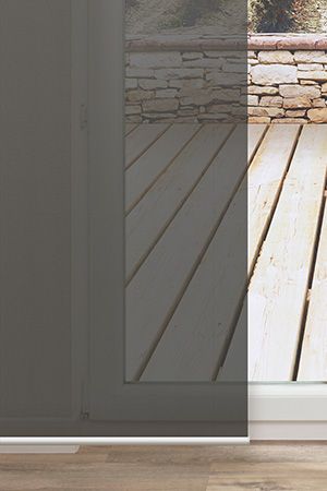 Dieser Flächenvorhang besteht aus strukturiertem, multifunktionalem Screengewebe. Die Basis ist PVC beschichtetes Polyester. Da es sich hier um ein schwer entflammbares Material handelt, kann der Flächenvorhang in öffentlichen und gewerblichen Bereichen eingesetzt werden. Zur Feuchtraumeignung kommen hier noch antibakterielle, schmutz- und partikelabweisende sowie fungizide Eigenschaften hinzu. Dadurch wird der Flächenvorhang höchsten Hygieneansprüchen gerecht. Das transparente Gewebe mit silberner Rückseite lässt zwar viel Licht hindurch, dieses wird jedoch leicht gedämpft und gemildert, wodurch der Flächenvorhang die Eignung als Blendschutz für den Bildschirmarbeitsplatz erfüllen kann. Da der Flächenvorhang einen guten Wärmeschutz bietet, trägt er nicht zuletzt auch im Wintergarten zu einem angenehmen Raumklima bei.