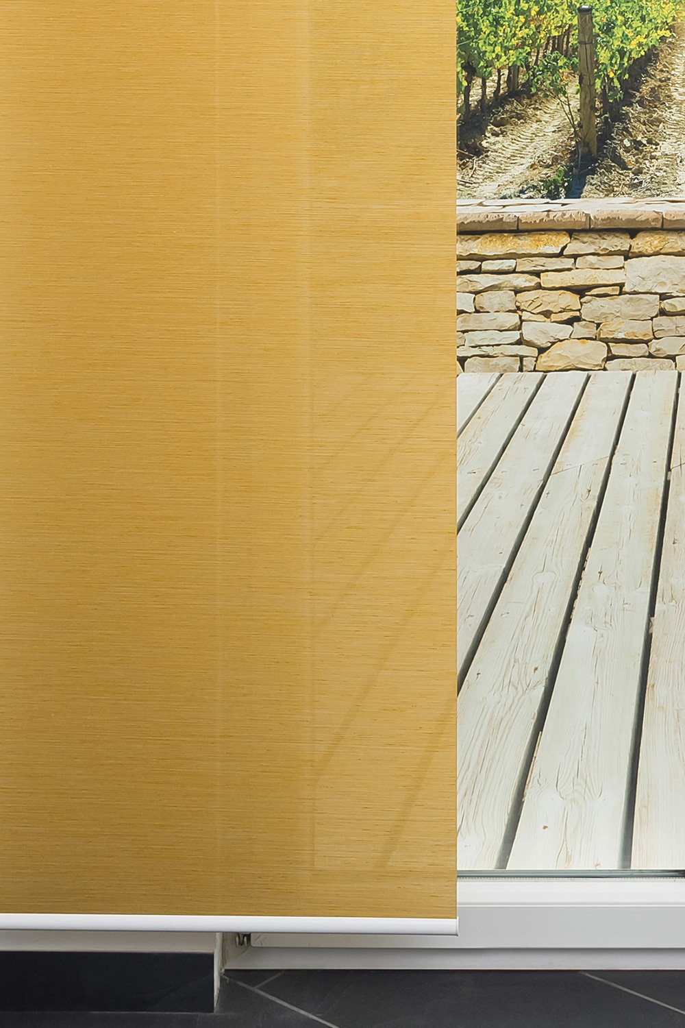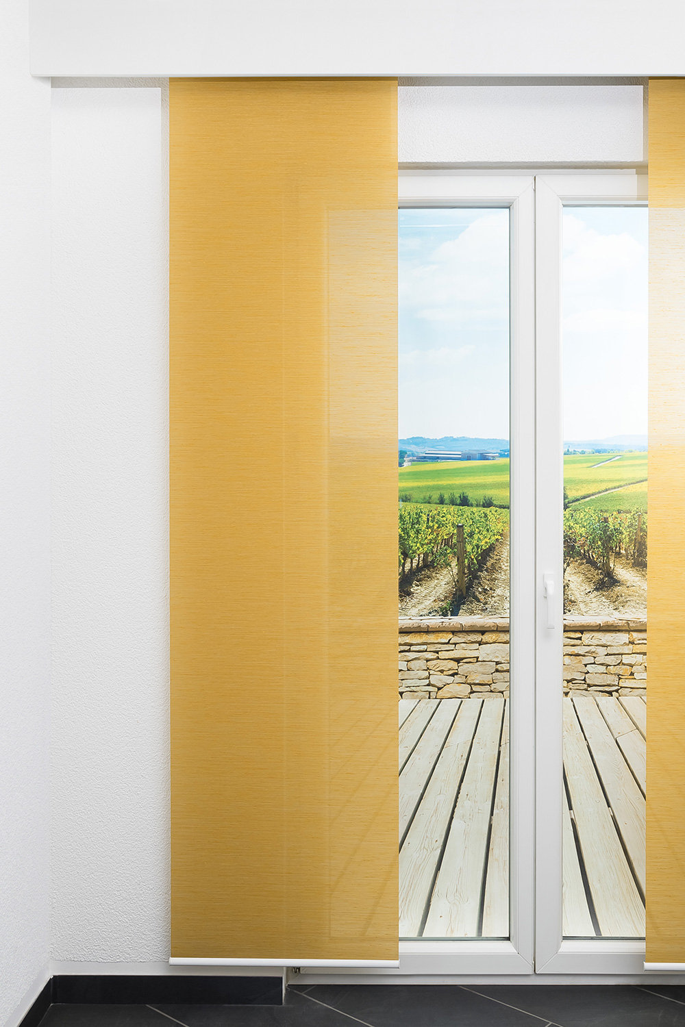 Dieser Flächenvorhang überzeugt durch eine besonders feine und natürliche Webstruktur, durch die das Tageslicht sehr wirkungsvoll in Szene gesetzt wird. Auch als Sichtschutz ist der Behang geeignet. Durch das feine Gewebe sind höchstens noch Umrisse erkennbar. Ideal ist die feuchtraumgeeignete Schiebegardine für die Fensterdeko im Bad und in der Küche, denn das Material lässt noch viel Tageslicht herein.