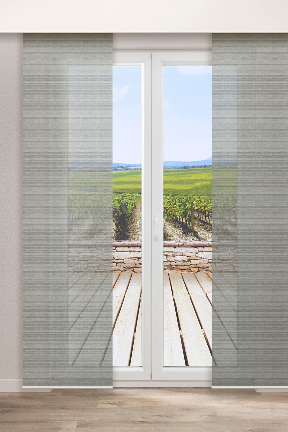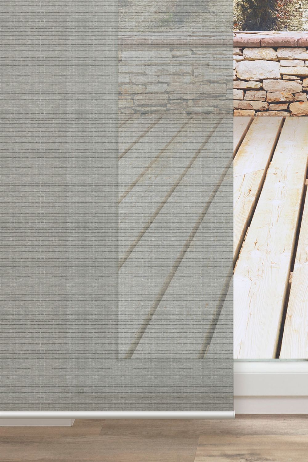 Ein maßgefertigter Flächenvorhang aus recyceltem Polyester mit einem an grobe Webstruktur erinnernden Streifenmuster bekommen Sie mit diesem Modell. Verdickte Fäden, die sich in horizontaler und vertikaler Richtung durch den Stoff ziehen, heben sich farblich vom Untergrund ab und verleihen dem Behang eine plastische Wirkung, ideal für jedes gemütliche Wohnzimmer. Auch in Feuchtbereichen wie Küche und Bad verbreitet das transparente Gewebe eine helle wie einladende Atmosphäre. Den Ausblick ins Freie können Sie dabei nahezu unverstellt genießen. Die Schiebegardine erfüllt den Oeko-Tex Standard 100, ist PVC- und halogenfrei sowie überaus pflegeleicht. Zum Reinigen des Stoffes genügt ein feuchtes Tuch.