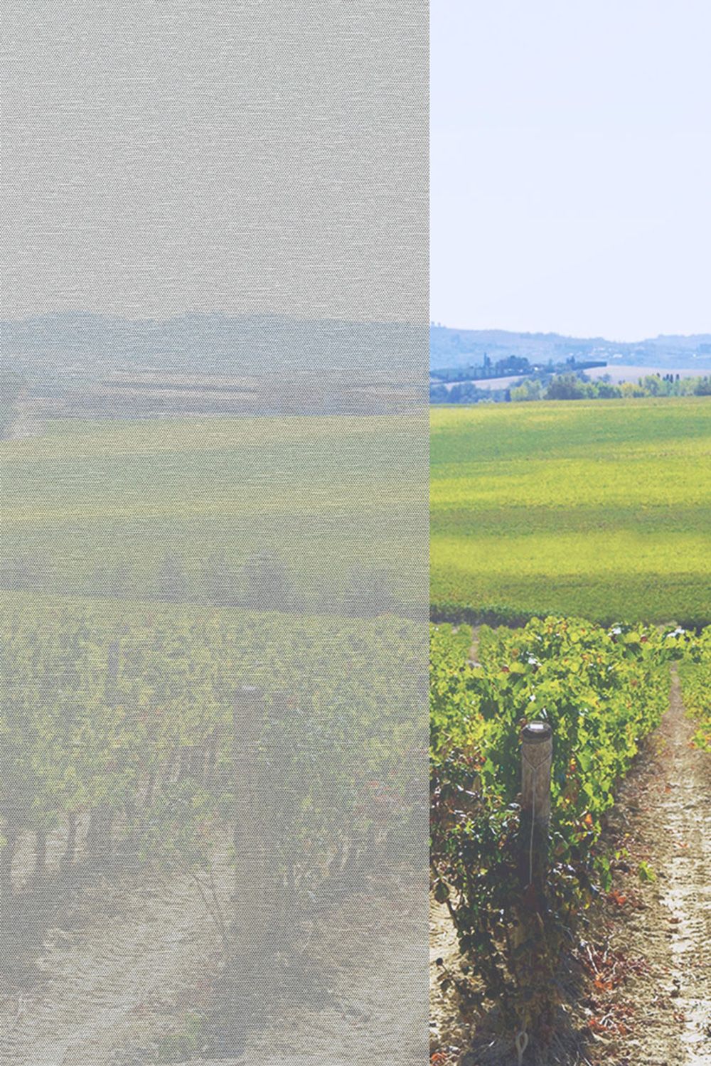 Bei näherem Hinsehen kann die Struktur dieses durchsichtigen Flächenvorhangs an PE-Rattan erinnern. Sie setzt sich aus mehrfarbigen Webfäden zusammen. Der transparente Flächenvorhang wird aufgrund seiner schmutz- und partikelabweisenden Eigenschaften höchsten Hygieneansprüchen gerecht und kann auch in Feuchträumen wie Bad und Küche zum Einsatz kommen. Der schwer entflammbare Flächenvorhang ist für öffentliche und gewerbliche sowie für private Räume und Gebäude geeignet. Aufgrund der Transparenz des Gewebes kommt viel Licht ins Zimmer, blendende und intensive Sonnenstrahlen erscheinen aber gedämpft und gemildert. Als Blendschutz für den Bildschirm erfüllt dieser Flächenvorhang also ebenfalls seinen Zweck.