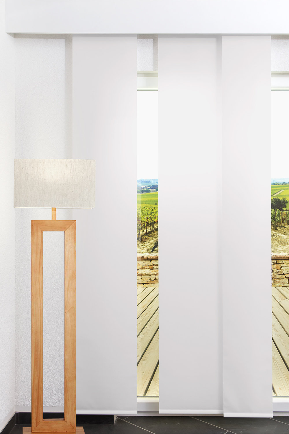 Setzen Sie gleichmäßig farbliche Akzente und schützen Sie Ihre Räume effizient vor Sonne sowie vor fremden Blicken. Dieses Modell beherrscht die Grundtugenden der Flächengardine spielend. Qualität und Bedienkomfort bilden die Grundlage für dezente Dekoration in vielen verschiedenen Farben. Die Webstruktur ist gut erkennbar aber feinmaschig-dezent. Zudem wird etwas Licht in den Raum gelassen, welches nicht nur Helligkeit ermöglicht, sondern auch die jeweilige Farbvariante schön zum Leuchten bringt. Einfach, dezent, dekorativ und zuverlässig. Ein schneeweißer Flächenvorhang ist der perfekte Fensterschmuck, um kleinen und niedrigen Räumen mehr Offenheit und Weite zu verleihen. Die Frische und die zeitlose Eleganz des Farbtons kommen vor allem bei einfallendem Sonnenlicht gut zur Geltung, da dieses nochmals intensiviert wird. Der unifarbene Stoff in Weiß wirkt clean und verbreitet neben Helligkeit eine luftig-leichte Atmosphäre: also die ideale Basis für die Kombination mit Farben, Formen und Mustern.
