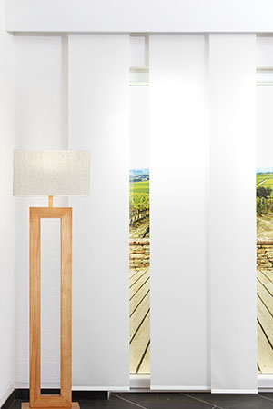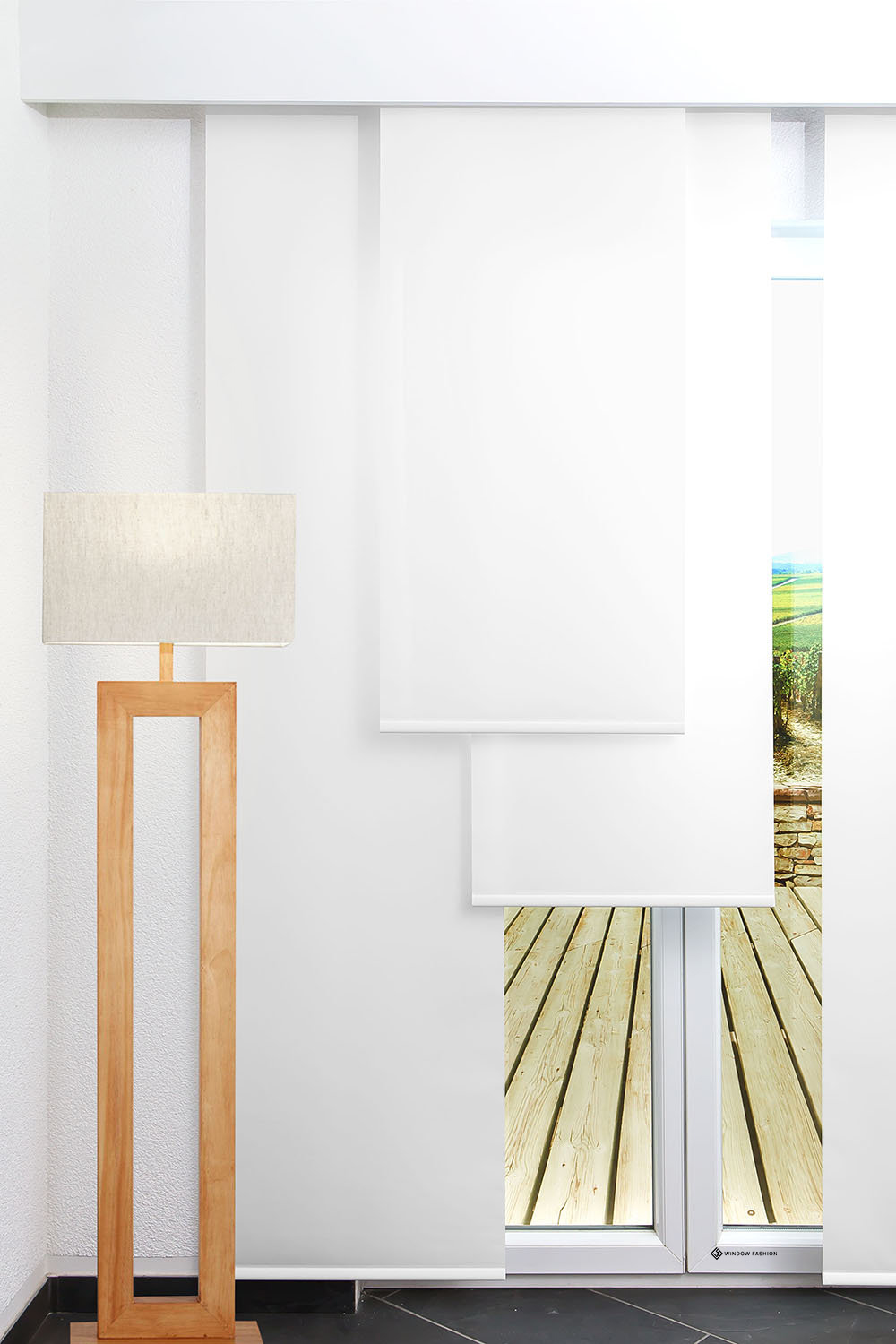 Setzen Sie gleichmäßig farbliche Akzente und schützen Sie Ihre Räume effizient vor Sonne sowie vor fremden Blicken. Dieses Modell beherrscht die Grundtugenden der Flächengardine spielend. Qualität und Bedienkomfort bilden die Grundlage für dezente Dekoration in vielen verschiedenen Farben. Die Webstruktur ist gut erkennbar aber feinmaschig-dezent. Zudem wird etwas Licht in den Raum gelassen, welches nicht nur Helligkeit ermöglicht, sondern auch die jeweilige Farbvariante schön zum Leuchten bringt. Einfach, dezent, dekorativ und zuverlässig. In Weiß eignet sich der Flächenvorhang für fast alle Wohnumgebungen. Ein Teamplayer, der sich unterordnen kann.
