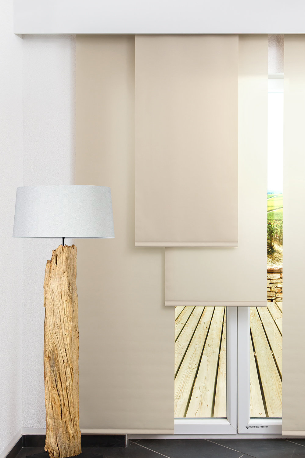 Setzen Sie gleichmäßig farbliche Akzente und schützen Sie Ihre Räume effizient vor Sonne sowie vor fremden Blicken. Dieses Modell beherrscht die Grundtugenden der Flächengardine spielend. Qualität und Bedienkomfort bilden die Grundlage für dezente Dekoration in vielen verschiedenen Farben. Die Webstruktur ist gut erkennbar aber feinmaschig-dezent. Zudem wird etwas Licht in den Raum gelassen, welches nicht nur Helligkeit ermöglicht, sondern auch die jeweilige Farbvariante schön zum Leuchten bringt. Einfach, dezent, dekorativ und zuverlässig. Neutrales Grau wirkt weniger kühl, wenn es mit Beige- und Brauntönen kombiniert wird. Das können Sie bei diesem Flächenvorhang wunderbar erkennen. Die Verbindung wirkt edel und lässt den Farbton angenehm mild erscheinen. Besonders schön lässt sich dieser Fensterschmuck in Beige-Grau kontrastreich mit weißen oder alternativ mit dunkelbraunen Holzmöbeln kombinieren. Für Akzente sorgen neben Pastellfarben auch Dekor in Gold oder glänzendem Kupfer sowie moderne Accessoires aus Metall.