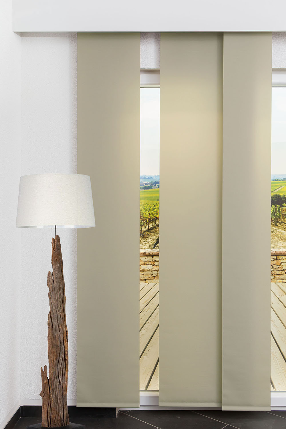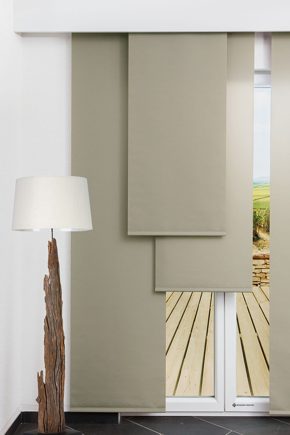 Setzen Sie gleichmäßig farbliche Akzente und schützen Sie Ihre Räume effizient vor Sonne sowie vor fremden Blicken. Dieses Modell beherrscht die Grundtugenden der Flächengardine spielend. Qualität und Bedienkomfort bilden die Grundlage für dezente Dekoration in vielen verschiedenen Farben. Die Webstruktur ist gut erkennbar aber feinmaschig-dezent. Zudem wird etwas Licht in den Raum gelassen, welches nicht nur Helligkeit ermöglicht, sondern auch die jeweilige Farbvariante schön zum Leuchten bringt. Einfach, dezent, dekorativ und zuverlässig. Unaufgeregtes Graubraun macht diese Schiebegardine prädestiniert für Einrichtungen mit viel hellem Holz. Oder wagen Sie die Kombination mit Gelb oder Türkis; sie werden überrascht sein.