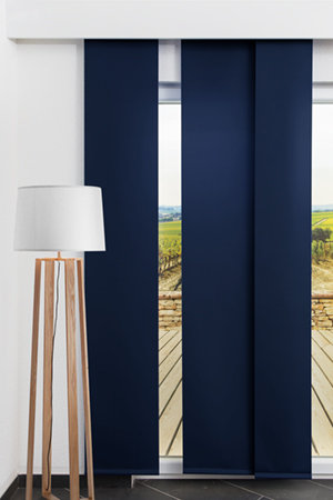 Setzen Sie gleichmäßig farbliche Akzente und schützen Sie Ihre Räume effizient vor Sonne sowie vor fremden Blicken. Dieses Modell beherrscht die Grundtugenden der Flächengardine spielend. Qualität und Bedienkomfort bilden die Grundlage für dezente Dekoration in vielen verschiedenen Farben. Die Webstruktur ist gut erkennbar aber feinmaschig-dezent. Zudem wird etwas Licht in den Raum gelassen, welches nicht nur Helligkeit ermöglicht, sondern auch die jeweilige Farbvariante schön zum Leuchten bringt. Einfach, dezent, dekorativ und zuverlässig. Mit diesem dunkelblauen Flächenvorhang bringen Sie eine sanfte und beruhigende Atmosphäre in den Raum. Besonders Schlafzimmer taucht diese Farbe in eine behagliche und lauschige Stimmung, die sich in Kombination mit warmen Erdfarben wie Creme und Beige sowie zeitlos schönen Grautönen und Weiß besonders gut entfalten kann. Wenn Sie kontrastreiche Akzente setzen möchten, eignen sich neben Petrol und Türkis auch Senfgelb, rötliche Brauntöne und Terrakotta.