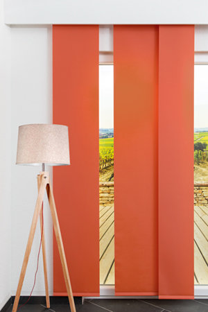 Setzen Sie gleichmäßig farbliche Akzente und schützen Sie Ihre Räume effizient vor Sonne sowie vor fremden Blicken. Dieses Modell beherrscht die Grundtugenden der Flächengardine spielend. Qualität und Bedienkomfort bilden die Grundlage für dezente Dekoration in vielen verschiedenen Farben. Die Webstruktur ist gut erkennbar aber feinmaschig-dezent. Zudem wird etwas Licht in den Raum gelassen, welches nicht nur Helligkeit ermöglicht, sondern auch die jeweilige Farbvariante schön zum Leuchten bringt. Einfach, dezent, dekorativ und zuverlässig. Mit diesem fröhlich und sommerlich wirkenden Flächenvorhang holen Sie sich viel gute Laune in Ihre vier Wände. Tiefes Orange schafft eine Atmosphäre voller Wärme und Lebendigkeit. Der Behang verbreitet Energie und Lebensfreude gepaart mit einem Hauch von südländischem Temperament. In mediterran eingerichtete Räume mit Farben wie Terrakotta, Beige, Sand und Creme passt diese Schiebegardine daher besonders gut. Große Grünpflanzen, Holzmöbel, natürliche Accessoires aus Rattan und helle Wände sorgen dabei für ein angenehmes Wohngefühl.