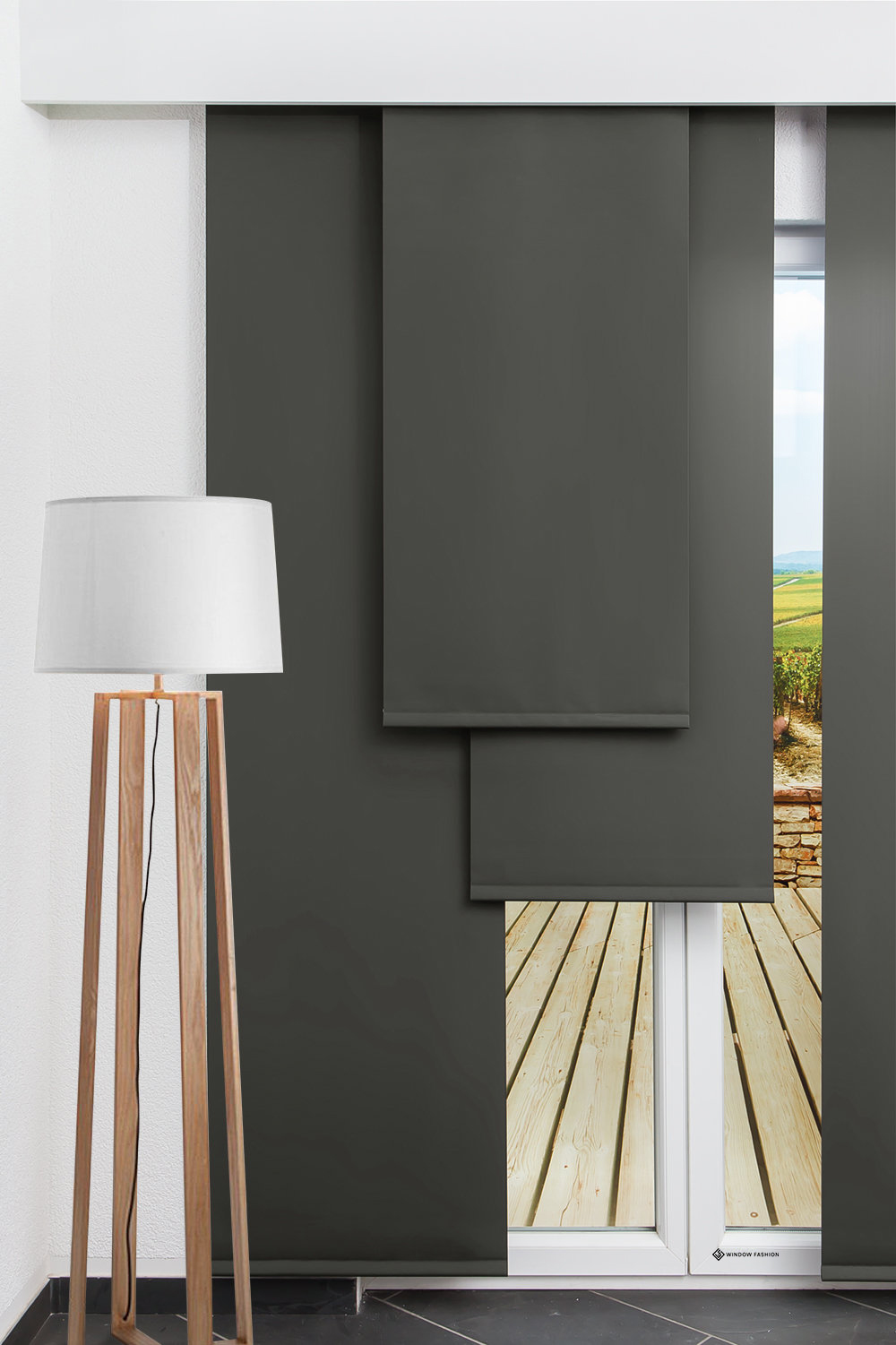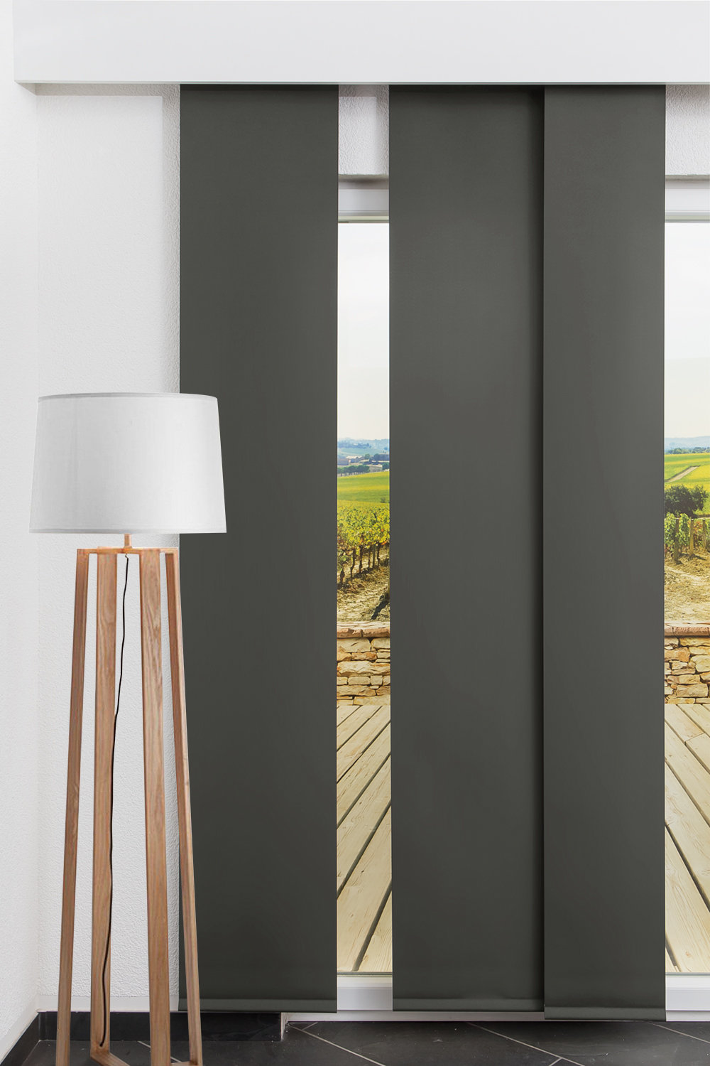 Setzen Sie gleichmäßig farbliche Akzente und schützen Sie Ihre Räume effizient vor Sonne sowie vor fremden Blicken. Dieses Modell beherrscht die Grundtugenden der Flächengardine spielend. Qualität und Bedienkomfort bilden die Grundlage für dezente Dekoration in vielen verschiedenen Farben. Die Webstruktur ist gut erkennbar aber feinmaschig-dezent. Zudem wird etwas Licht in den Raum gelassen, welches nicht nur Helligkeit ermöglicht, sondern auch die jeweilige Farbvariante schön zum Leuchten bringt. Einfach, dezent, dekorativ und zuverlässig. In tiefem Anthrazit präsentiert sich dieser Flächenvorhang stark und kraftvoll. Aufgrund des lichtdurchlässigen Stoffes wirkt der dunkle Ton milder und außerdem elegant und stilvoll. Bringen Sie den stillen und beruhigenden Grauton mit verwandten Nuancen zusammen, schaffen Sie ein modernes und schickes Flair. Demgegenüber sorgen Weiß, Türkis und helles Blau für Lebendigkeit und Frische.
