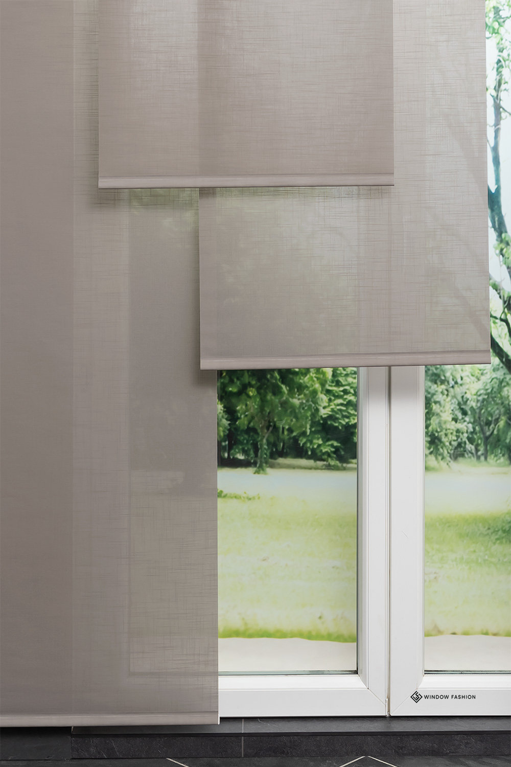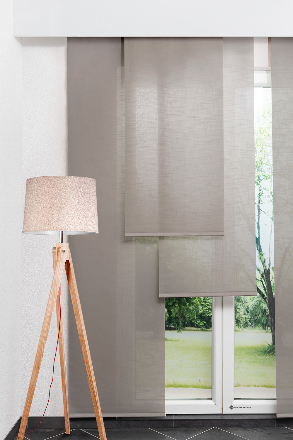 Das feine, an das Naturmaterial Leinen erinnernde Gewebe dieses unifarbenen Flächenvorhangs lässt viel Licht hindurch, die transparente Fensterdeko trägt zu einem freundlichen und einladenden Ambiente bei, wofür die Helligkeit im Raum ein wesentlicher Faktor ist. Der Flächenvorhang legt sich wie ein zarter Schleier über das Fenster, welcher blendende Sonnenstrahlen milder erscheinen lässt, hauptsächlich jedoch dekorative Zwecke erfüllt, keinen Sichtschutz bietet. Da das Gewebe hoher Wärme und Luftfeuchtigkeit in Form von Dampf und Dunst standhält, ist das Modell in Bad und Küche ebenfalls verwendbar, lässt sich durch simples feuchtes Abwischen schnell reinigen. Dieser zeitlos schöne Grauton wirkt durch die Braunanteile warm und gemütlich, hat daher einige Momente der Farbe Taupe in sich. In Verbindung mit zarten Pastellnuancen, naturbelassenem Holz und warmen Metallictönen wirkt das Ambiente ausgesprochen harmonisch. Für kontraststarke Looks verwenden Sie dunkles Blau, Anthrazit und Violett.
