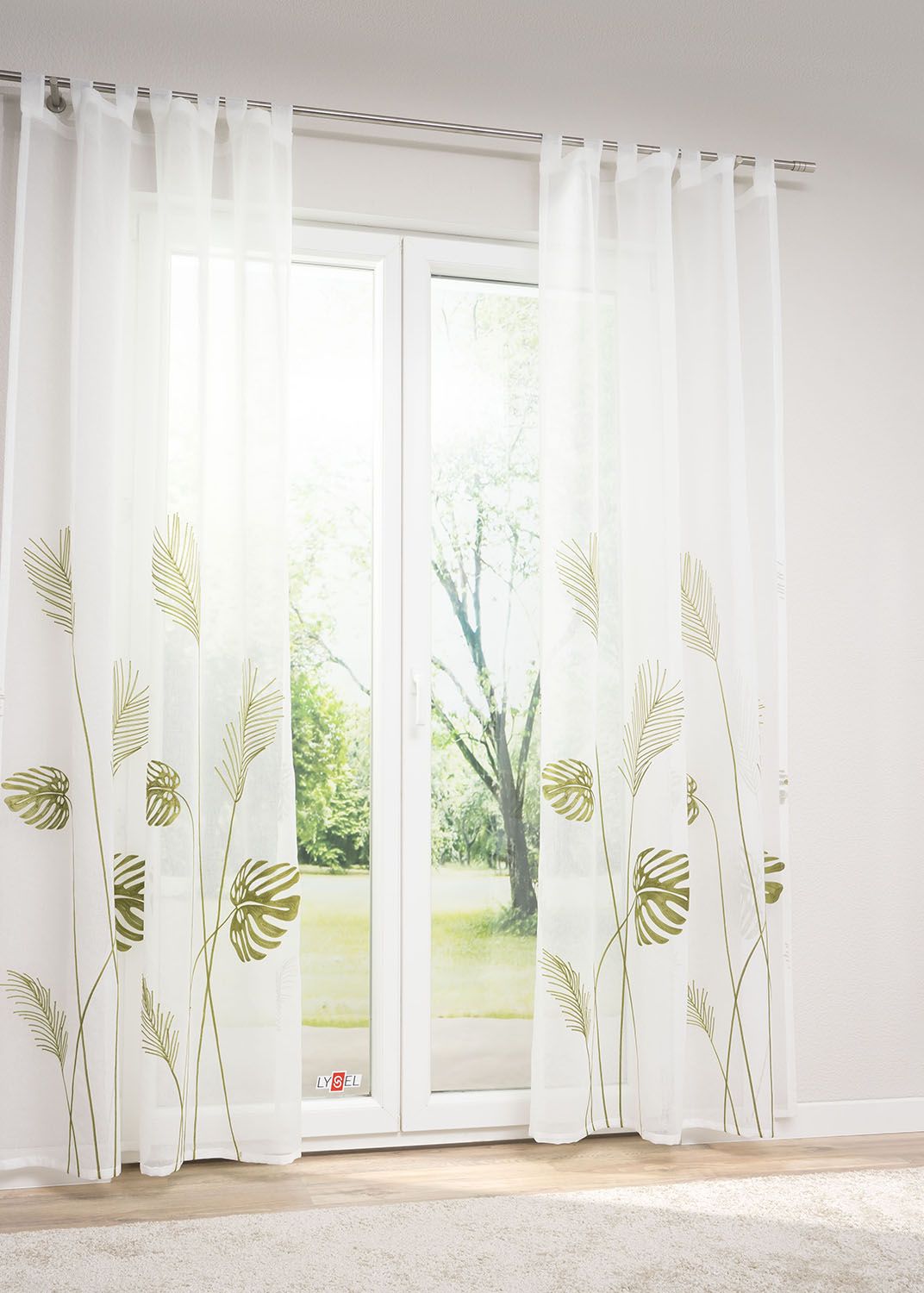 Dieser durchsichtige Schlaufenschal mit floralem Motiv ist dekorativ und praktisch zugleich. Er schirmt blendendes Sonnenlicht ab und sorgt für eine helle, lichtdurchflutete Atmosphäre. Der Schlaufenschal besteht aus Polyester und kann bei Bedarf schonend bei 30 Grad gewaschen werden. Zudem bringt der ansonsten unifarbene, im unteren Bereich aber mit verschiedenen Blättern und Pflanzen verzierte Vorhang ein natürliches Flair in Ihr Zuhause.