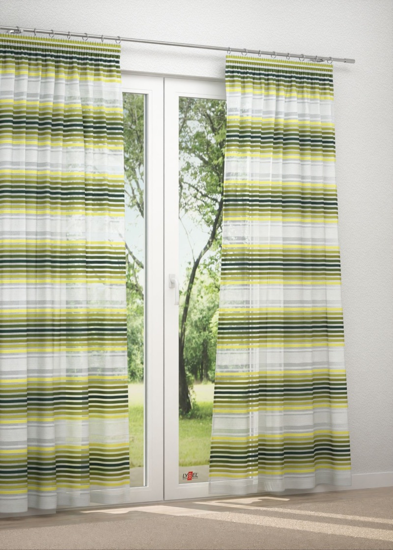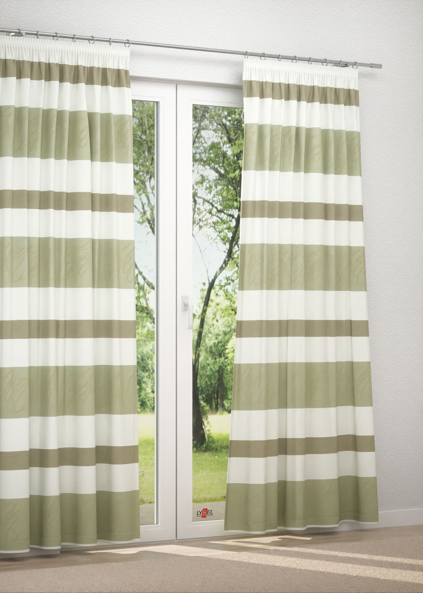 Dieser gestreifte Stoff überzeugt vor allem durch seine abwechslungsreiche Optik und seine vielfältigen Einsatzmöglichkeiten. Die Streifen bewegen sich innerhalb einer Farbfamilie, das Design wirkt harmonisch und stimmig. Dabei sind die farblich intensiveren Flächen noch mit schimmernden, an Arabeske erinnernden, geschwungenen Linien verziert. Das lichtdurchlässige, blickdichte Polyestergewebe können Sie ausserdem schonend bei 30 Grad waschen. Seiten und Abschluss des Stoffes sind gesäumt.