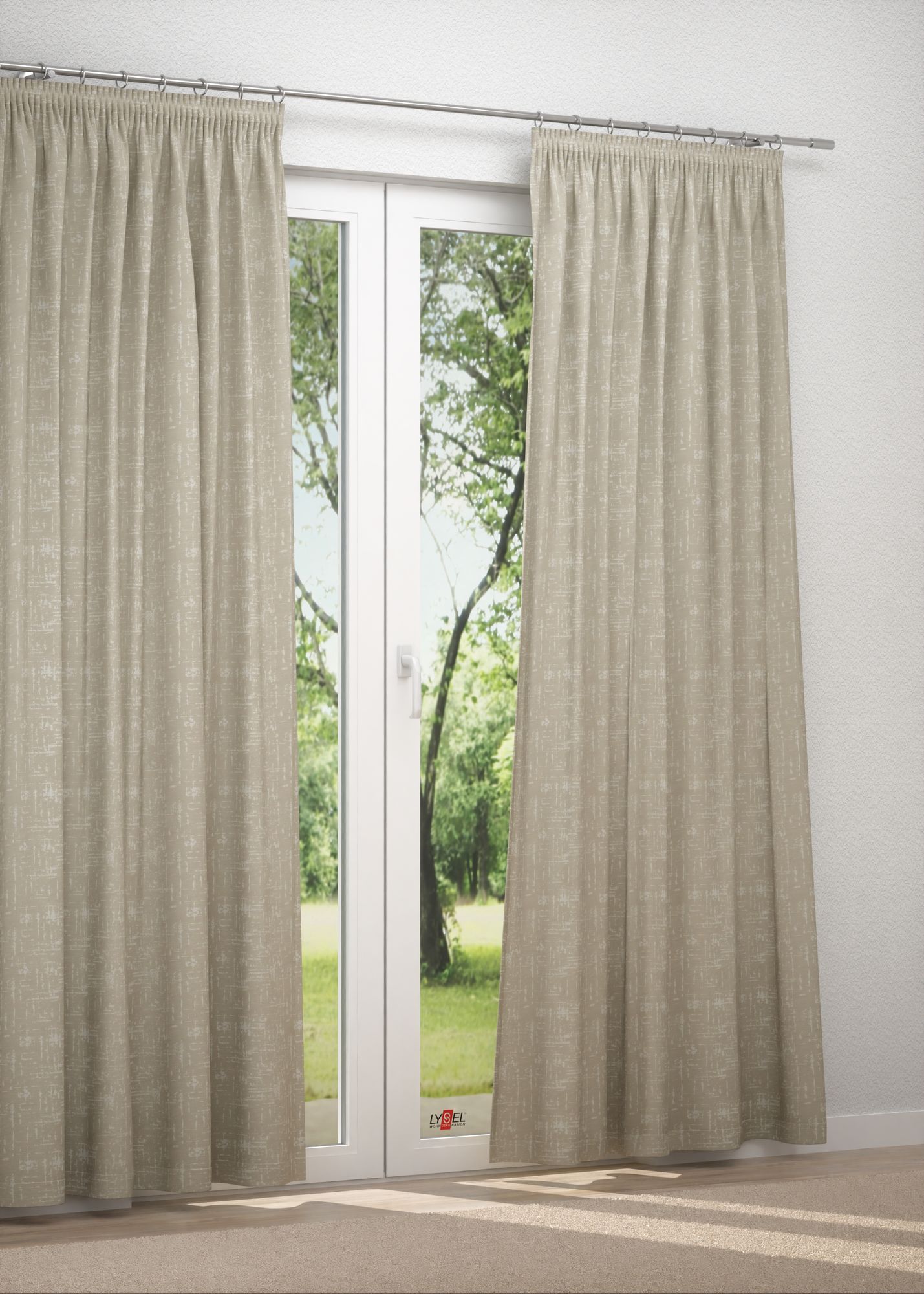Das abstrakte, stark durchbrochene Gitternetz verleiht diesem lichtdurchlässigen, blickdichten Stoff einen ganz eigenen, modernen Charakter. Dazu kommt, dass dieses Muster auf der Rückseite in Negativ-Optik vorhanden ist. Die abwechslungsreiche Struktur ist dezent schimmernd an den unifarbenen Hintergrund angepasst. Dadurch, dass Seiten und Abschluss gesäumt sind, stellt dieses Modell einmal mehr seine hochwertige Verarbeitung unter Beweis.. Für die Reinigung des Polyestergewebes empfiehlt sich der Schonwaschgang bei 30 Grad.