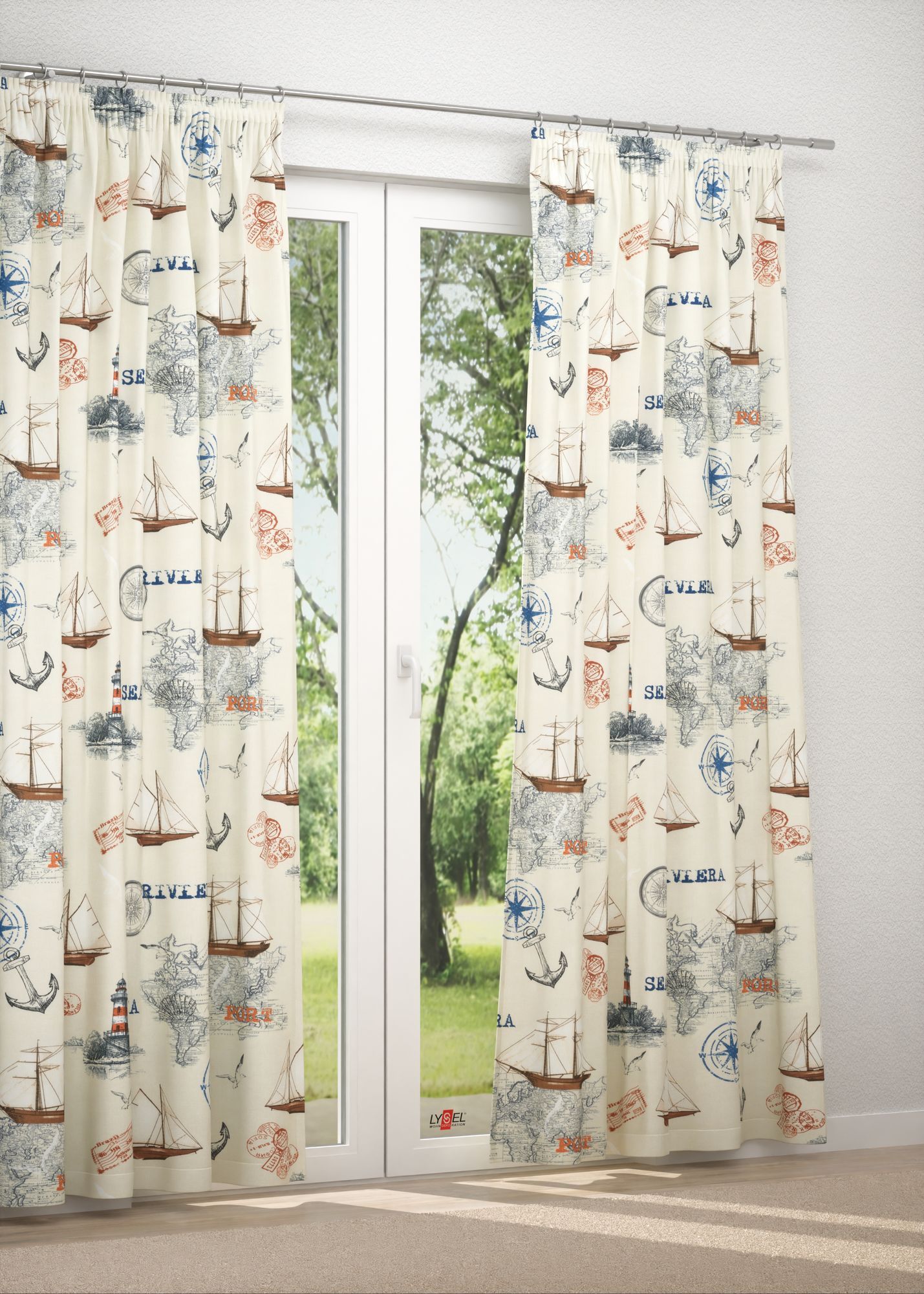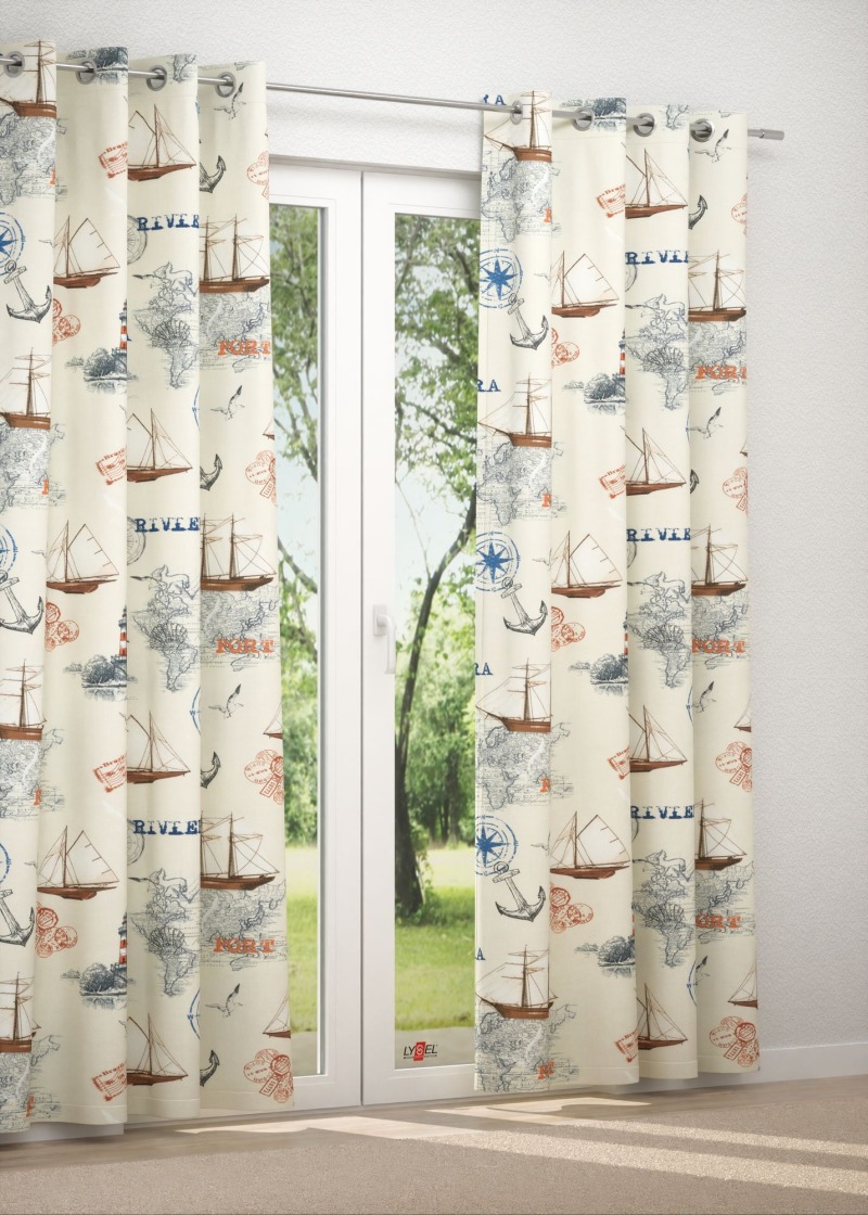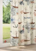 Segelboote, Möwen, Kompassnadeln, Landkarten. Das Design dieses Stoffes steht ganz im Zeichen der Seefahrt. Die raue, salzige Brise und das maritime Flair sind förmlich zu spüren. Möchten Sie auch Größeres erreichen, die Welt erobern? Dieser Stoff inspiriert dazu, sich seine Träume zu erfüllen und nicht ewig darauf zu warten, dass sie vorbeischippern. Auf dem hellen, naturfarbenen Stoff sind die Gestaltungselemente deutlich zu sehen. Ob Sie sich daraus nun einen Gardinenschal oder ein Raffrollo nach Maß gestalten oder lieber Ihre Accessoires selbst nähen, steht Ihnen frei. Eines ist jedoch klar: Als Fensterdeko macht der glatte, weiche herabfallende Stoff eine besonders gute Figur. So bietet das lichtdurchlässige Polyestergewebe die perfekte Mischung aus Helligkeit und Sichtschutz. Letzterer ist tagsüber genauso wie nachts gegeben.