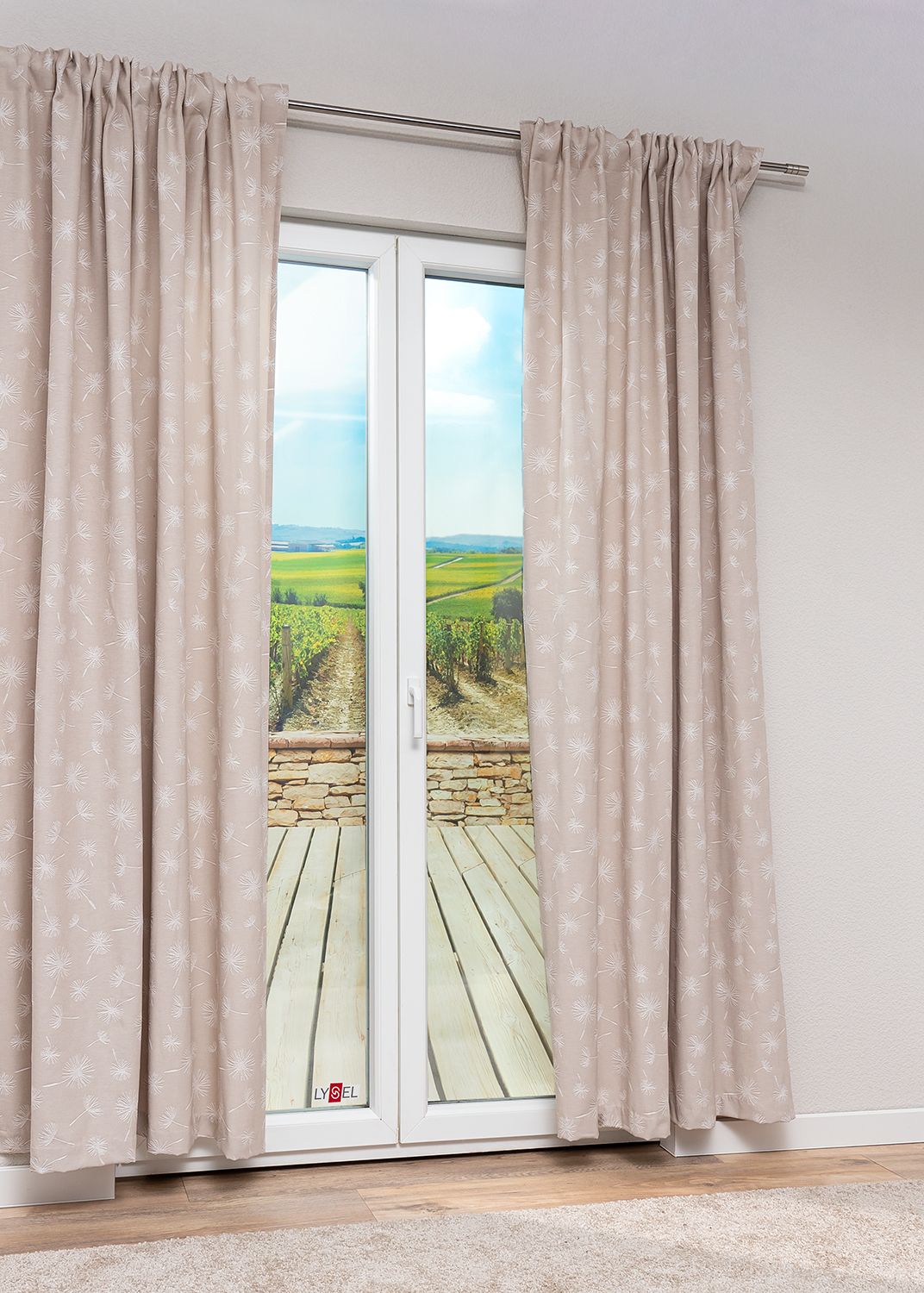 - Ein lichtdurchlässiger Vorhang aus 61% Baumwolle, 39% Polyester.
