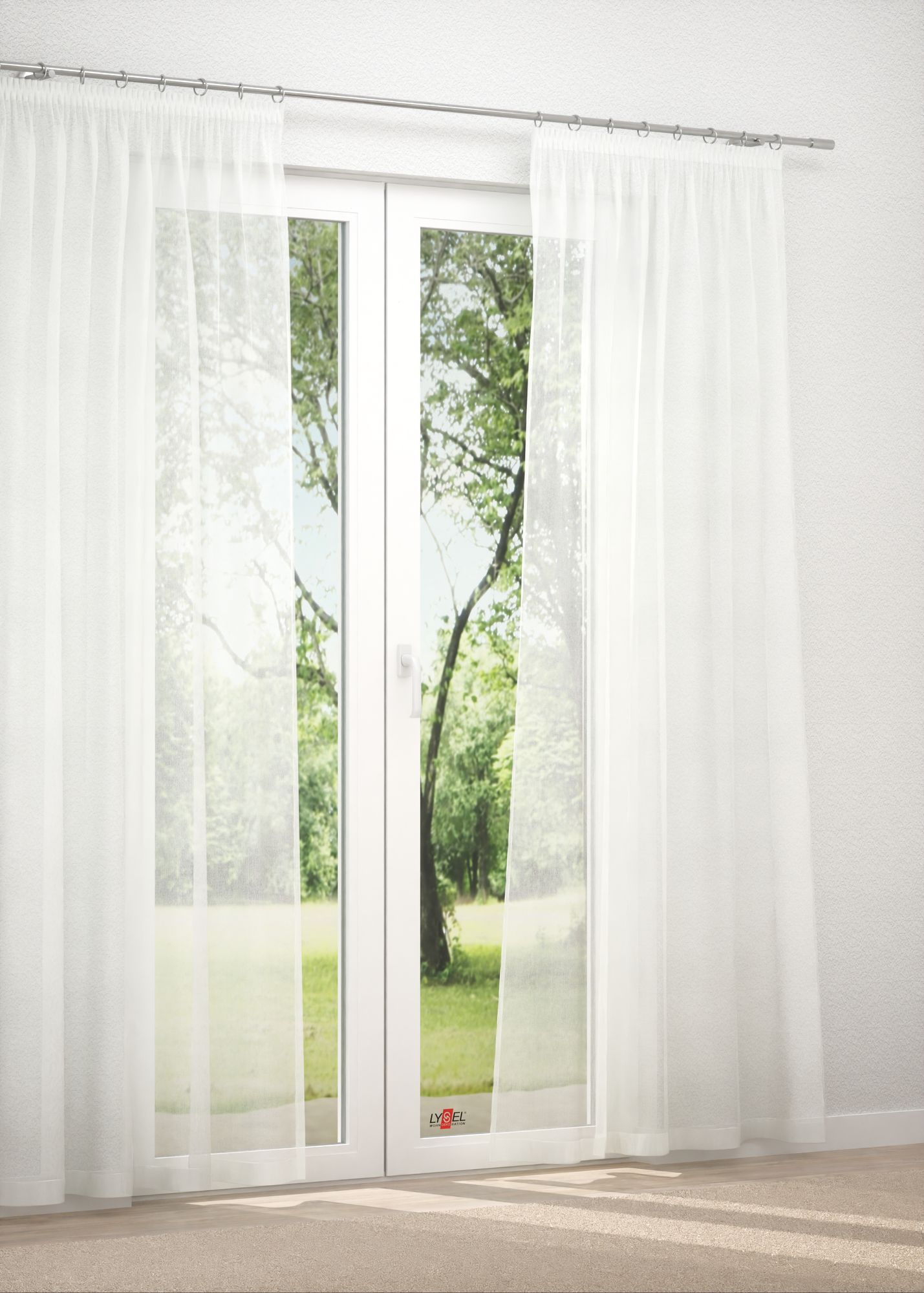 Mit diesem Stoff, dessen Aufbau an ein feines Gittergewebe erinnert, können Sie eine leichte und luftige Fensterdeko kreieren. Für fließend und elegant herabfallende Gardinenschals und hübsche Raffrollos, die Sie nach Maß bestellen können, eignet sich das durchsichtige Gewebe hervorragend. Der schöne Fall wird durch das eingearbeitete Bleiband noch begünstigt. Es kommt viel Licht in den Raum, wodurch dieser optisch größer und offener wirkt. Bei Bedarf können Sie das Gewebe schonend bei 30 Grad waschen.