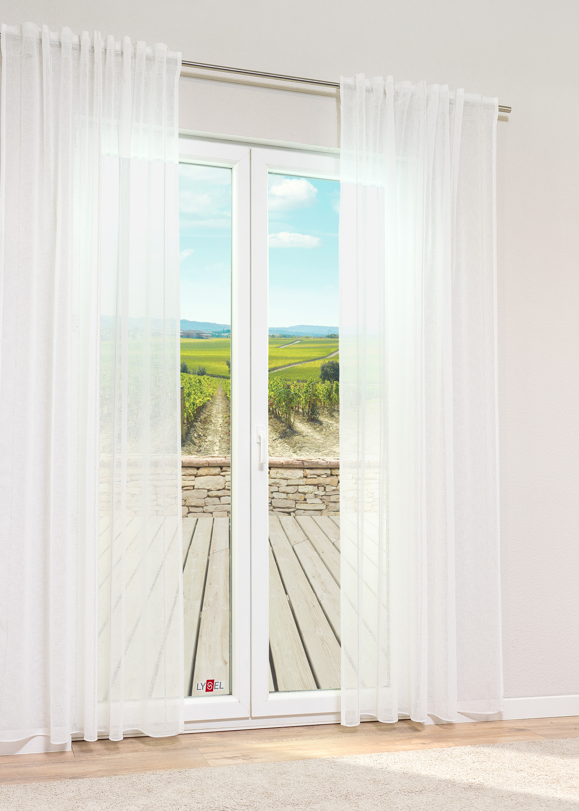 - Ein transparenter Vorhang aus 100% Polyester.