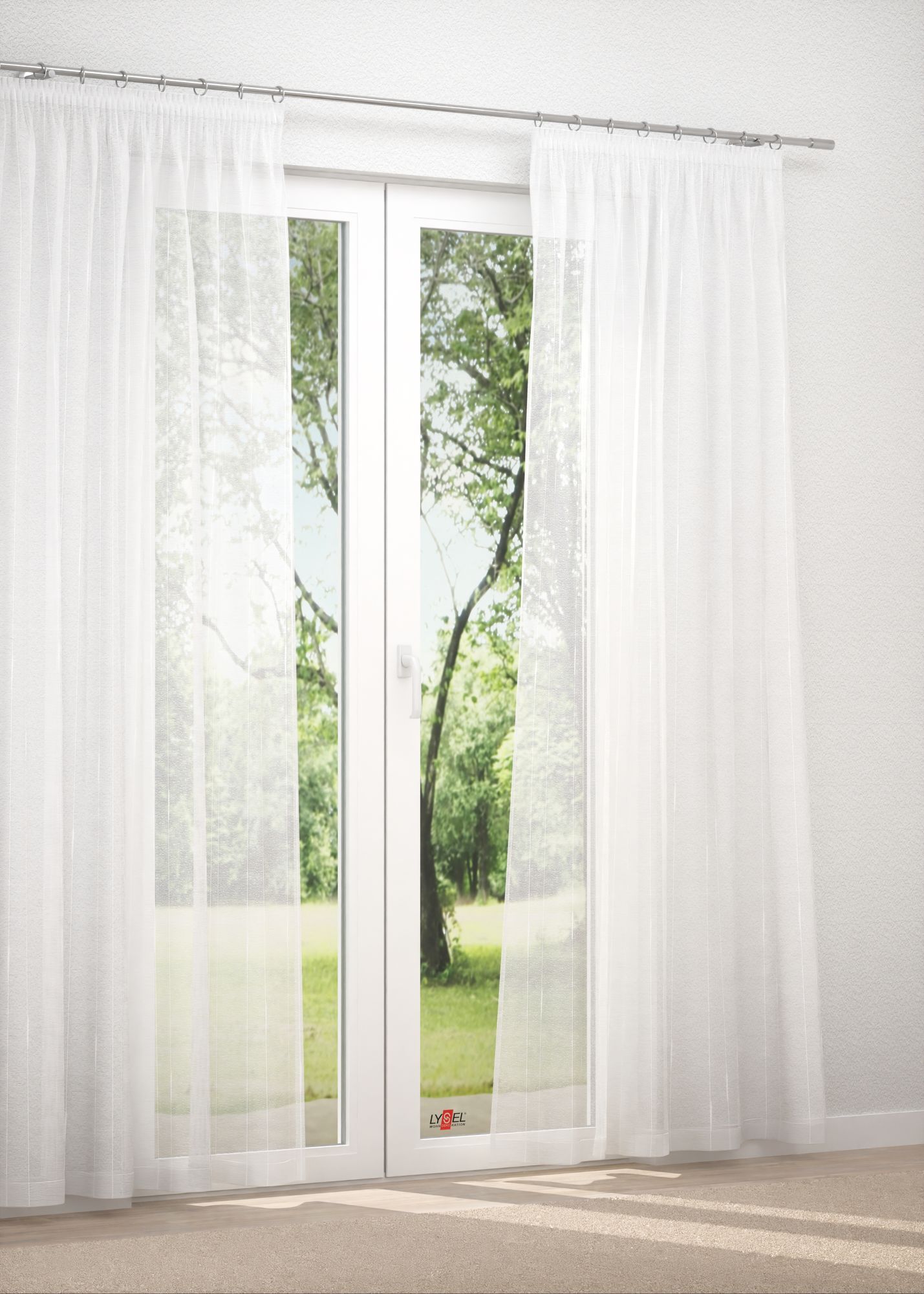 Transparente Stoffe wie dieser erscheinen locker und unbeschwert. Die hauchfeine, luftig-leichte Deko sorgt für ein Gefühl von Entspannung und Wohlbefinden, wirkt gleichzeitig wohnlich und modern. Durch das zarte, leicht schimmernde Streifenmuster präsentiert sich dieses Modell elegant, effektvoll und zeitlos. Dieser Eindruck wird durch die Beschaffenheit des Polyestergewebes unterstrichen. Es lässt viel Licht in den Raum, intensive Sonnenstrahlen erscheinen etwas milder. Das eingearbeitete Bleiband, der gesäumte Abschluss und die gesäumten Seiten sind mit verantwortlich für das schöne Erscheinungsbild. Mit diesem Dekostoff lassen sich eine Menge kreativer Ideen umsetzen. Außerdem ist eine schonende Reinigung mit der Waschmaschine bei 30°C möglich.
