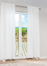 Ein Dekoschal, der Ihr Fenster nicht nur unaufdringlich schmückt, sondern auch viele praktische Vorzüge zu bieten hat, bekommen Sie bei Bestellung dieses Modells. Die Wahl eines Mono-Farbtons bestimmt nicht nur die passive Erscheinung des Behangs, sondern verleiht einfallendem Licht eine dekorative Qualität. Das Ambiente des Raumes wirkt nicht vollkommen von der Umwelt isoliert, sondern effektvoll ausgeleuchtet. Das Mischgewebe aus Baumwolle und Polyester leistet außerdem einen wirkungsvollen Beitrag zum Schutz Ihrer Privatsphäre. Selbst abends im Schein von künstlicher Beleuchtung erkennen neugierige Nachbarn hinter dem Schal nur schemenhafte Umrisse. Hervorzuheben ist außerdem die feine Oberflächenstruktur des Stoffes, der sanfte Fall und die praktische Aufhängung durch das eingenähte Multifunktionsband. Die Reinigung ist bequem mit der Waschmaschine möglich. Passendes Zubehör wie Gardinenstangen oder Zierspangen finden Sie bei uns im Shop.