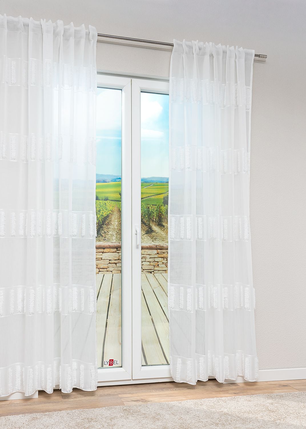 Mit dieser Gardine haben Sie viele Gestaltungsmöglichkeiten. Sanft und unaufdringlich integriert sich ihre weiße Optik in natürlich-moderne Wohnstile. Knallige Signalfarben wie Rot, Gelb oder Orange sehen neben diesem Fensterschmuck besonders frisch und fröhlich aus. Jede Menge jugendlichen Charme erzeugt die Kombination mit Pastelltönen wie Hellblau, Mint oder Rosa.