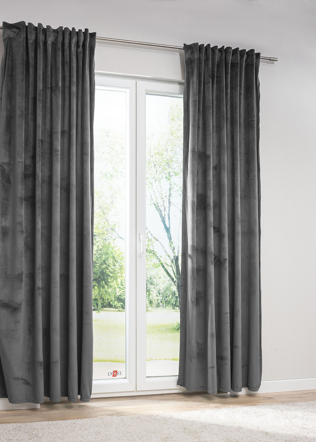 Mit einer Fensterdeko in diesem dunklen, warmen Grauton erhält der Raum gleichermaßen ein edles und modernes Flair. Mit verwandten Grautönen, Weiß und Schwarz sowie dem Spiel mit Mustern und Strukturen setzen Sie gekonnt einen monochromen Stil um, der ruhig und ausgeglichen wirkt. Während zarte Puder- und Pastelltöne einen angenehmen Gegenpart zu dem dunklen Akzentton bilden, entfalten Knallfarben neben diesem Zugbandschal ihre gesamte Leuchtkraft.