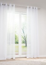Dieser unifarbene, transparente Ösenschal ist ein echtes Highlight. Der zarte Polyesterstoff lässt viel Licht in den Raum, dieser wirkt optisch größer, zudem offen, freundlich und einladend. Wie ein hauchfeiner Schleier fällt diese Fensterdeko anmutig herab und erfüllt vornehmlich dekorative Zwecke. Die großen runden Metallösen sind zusätzliche Schmuckstücke, wodurch dieser Ösenschal zu etwas Besonderem wird. Sie können ihn ganz einfach mit blickdichten Vorhängen kombinieren und auf diese Weise außerdem schöne Farb- und Lichteffekte erzeugen. Bei 30 Grad im Schonwaschgang lässt sich das Gewebe einfach reinigen. Gern kürzen wir die angegebene Fertiggröße auf die für Ihre Fenster passende Länge.