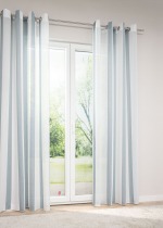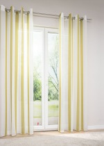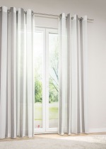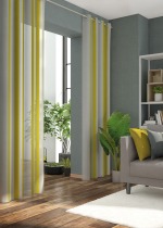 Dieser halbtransparente Ösenschal ist mit vertikalen Streifen verziert. Dabei sind die bunten Streifen schmäler als die weißen Bereiche dazwischen. Mit einer angenehmen Luftigkeit und einer stilvollen Eleganz bereichert diese Fensterdeko den Raum. Sie genießen eine helle, lichtdurchflutete Atmosphäre, tagsüber haben Sie einen gewissen Sichtschutz. Mit großen runden Metallösen ausgestattet lässt sich der Ösenschal einfach auf eine Gardinenstange aufziehen. In feinen eleganten Wellen fällt er herab und kann die Glasfront sanft umschmeicheln. Seiten und Abschluss sind gesäumt, auf Wunsch kürzen wir den Ösenschal in Fertiggröße auf eine passende, individuelle Länge. Für die Reinigung des Polyestergewebes nutzen Sie am besten den Schonwaschgang bei 30 Grad. Gardinenstangen mit verschiedenen Endstücken können Sie direkt zu Ihrer Bestellung hinzufügen. Ein Schleuderstab erleichtert die Bedienung, Gardinen lassen sich einfach auf- und zuziehen, der Stoff wird geschont.