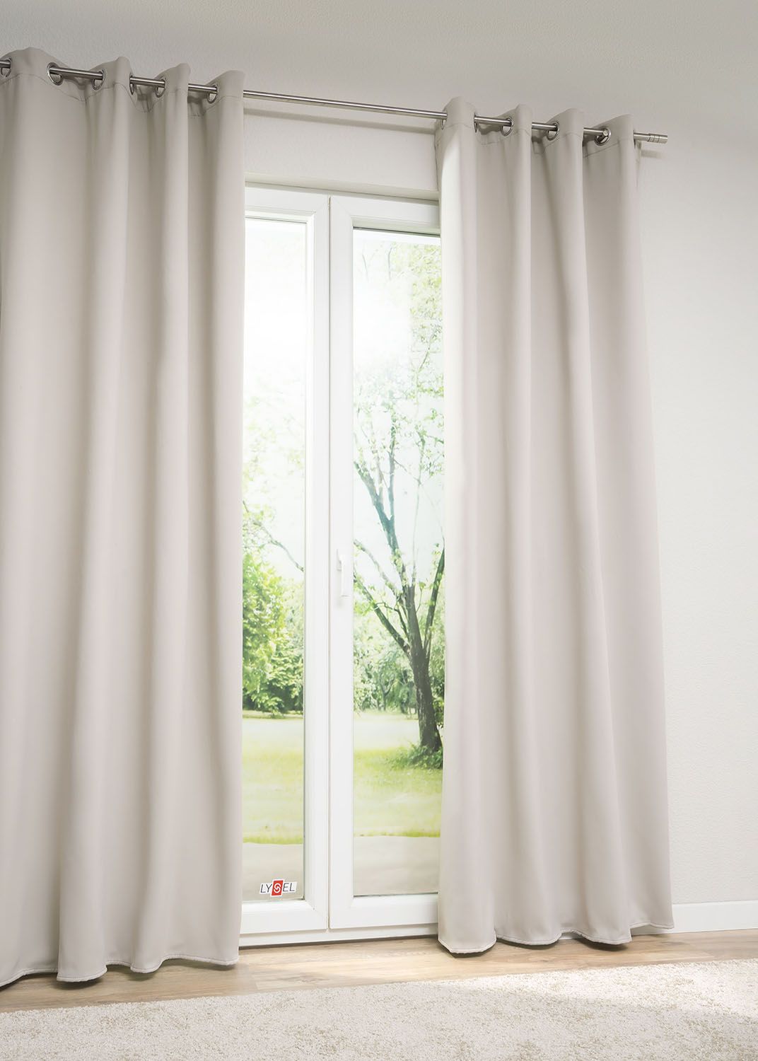 Dieser abdunkelnde, unifarbene Ösenschal kann durch seine schlichte Gestaltung viele Wohnumgebungen stimmig ergänzen. Die praktischen Eigenschaften tragen zu einem wohnlichen und gemütlichen Ambiente bei. Das abdunkelnde und blickdichte Polyestergewebe kommt neben dem Wohnbereich vor allem Schlaf- und Kinderzimmern zugute. Mittagsschlaf und entspannte Ruhepausen zwischendurch sind unabhängig von der Helligkeit draußen jederzeit möglich. Seiten und Abschluss sind gesäumt, die Rückseite ist mit einer farblich angepassten Beschichtung versehen. Optional können Sie zur Befestigung an der Wand eine Gardinenstange mit verschiedenen Endstücken hinzufügen. Um die Bedienung zu erleichtern und den Stoff zu schonen, steht außerdem ein Schleuderstab zur Verfügung. Auf Wunsch kürzen wir die angegebene Fertiggröße auf eine individuelle Länge und passen den Ösenschal damit an Ihre Fenster an.