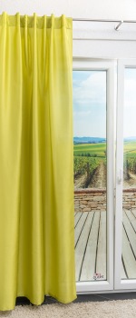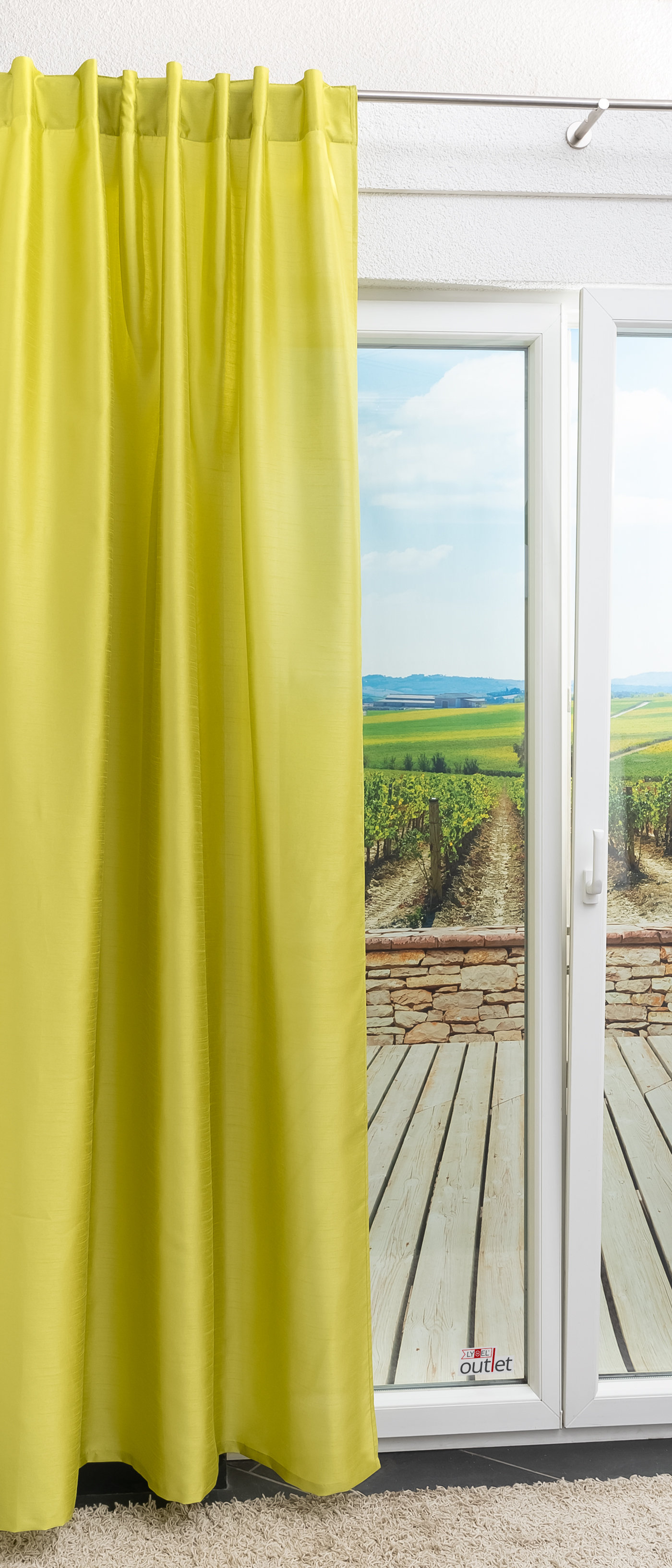 Mit seinem unifarbenen Design bringt der hellgrün glänzende Stoff des Lysel Outlet - Schlaufenschals farbige Abwechslung und Frische in den Raum. Das Gewebe ist durchzogen mit kaum sichtbaren feinen waagerechten Linien. Gerade in einem modernen Wohnumfeld setzt der Vorhang spezielle Akzente und wirkt als besonderer Hingucker an Ihrem Fenster. Diesen Schlaufenschal können Sie mit hellen Möbeln ebenso kombinieren wie mit einer dunkler gehaltenen Einrichtung.