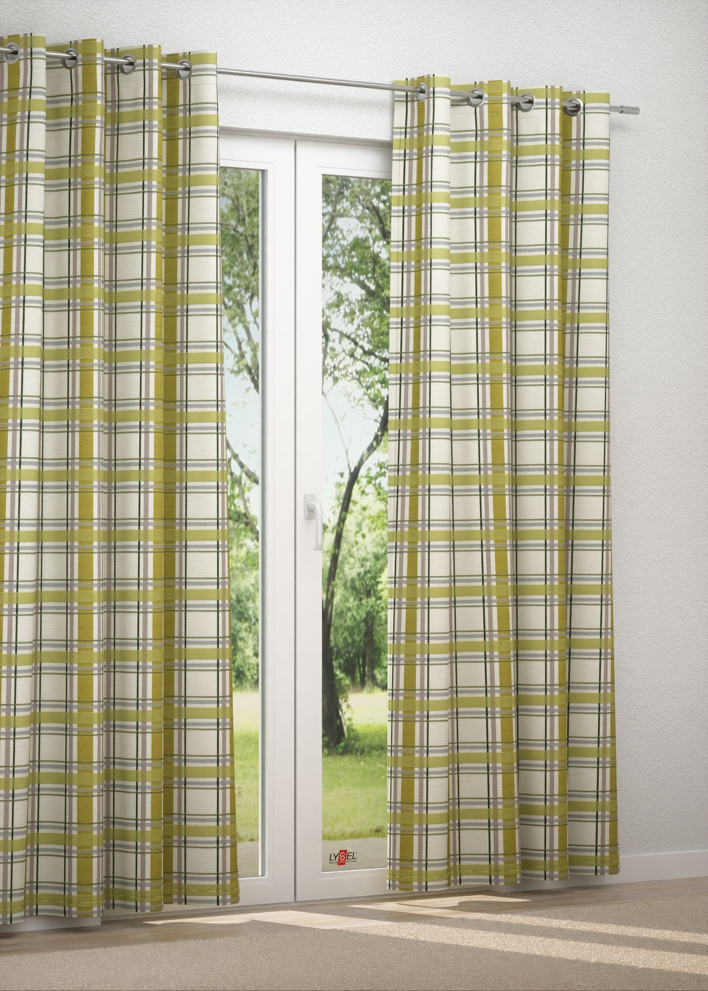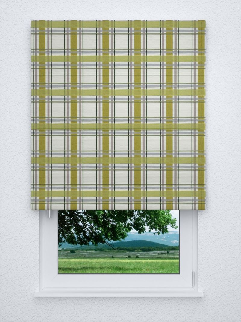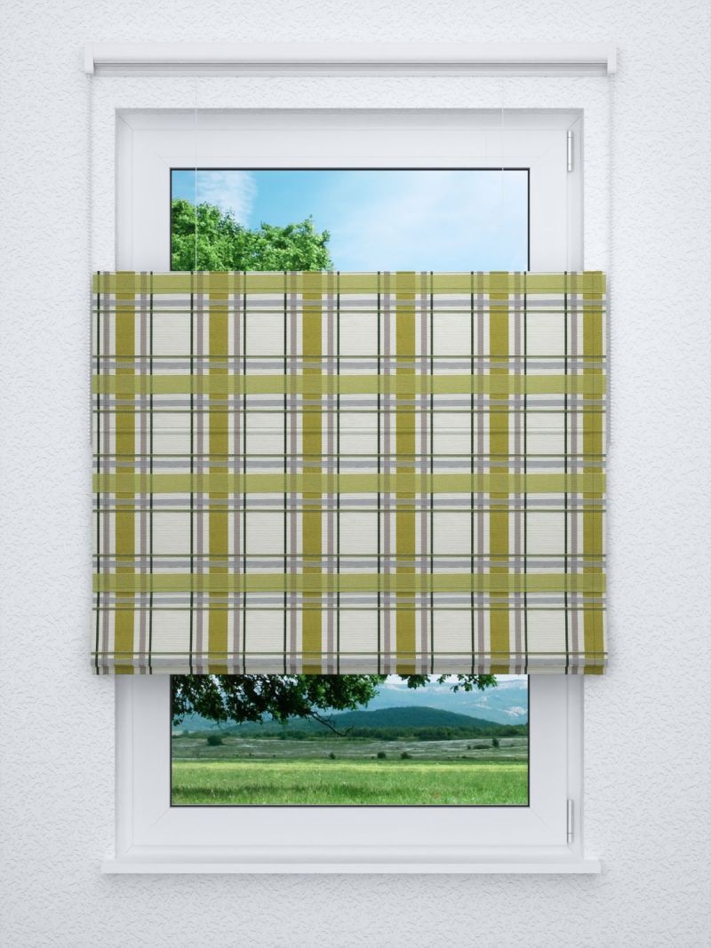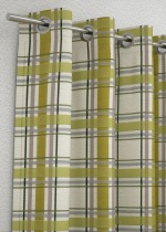 In dem karierten Muster, in welchem Limonengrün die Hauptrolle spielt, sind auch weitere, feinere Streifen in dunkleren Grüntönen, warmem Grau und einem an Taupe erinnernden Ton zu finden. Durch das Karo-Design entsteht fast von allein ein gemütliches, heimeliges Flair. Der helle Stoff und die limonengrünen Elemente sorgen für Leichtigkeit und Frische.