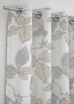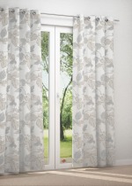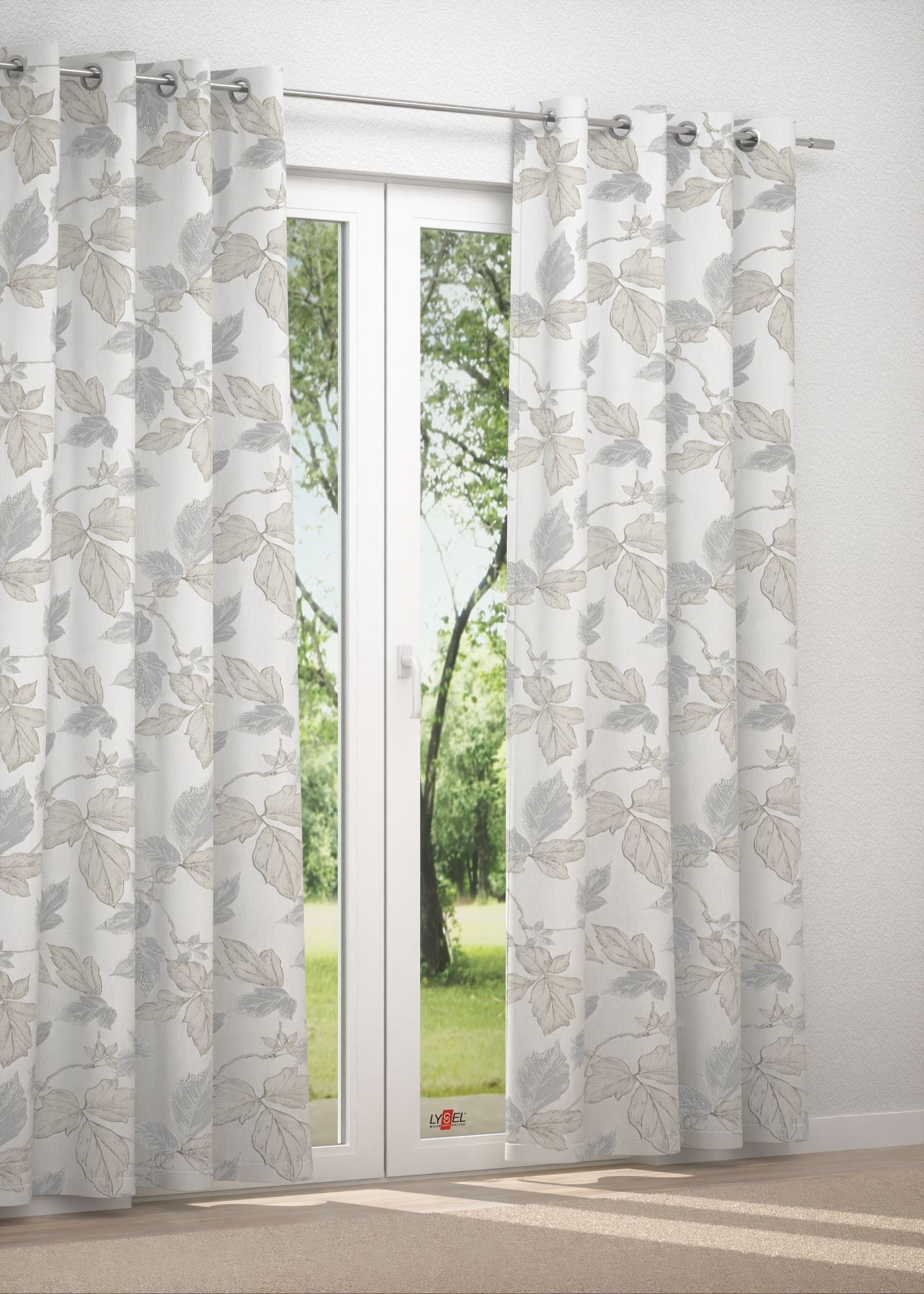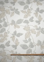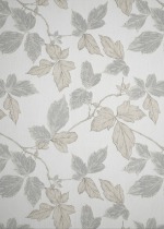Der in einem milden Weißton gestaltete Stoff offenbart Blätter in hellem Beige und dunklerem Graubeige, die sich durch den zarten Schimmer und die detailreichen Umrisse, Stiele und Blattadern eindrucksvoll abheben. Bei der Dekoration können Sie in der Welt der sanften Erdtöne bleiben oder auch rauchige Grüntöne wie Olivgrün, Lindgrün und Salbeigrün ins Spiel bringen. Warm glänzende Metalle wie Kupfer und Messing greifen den edlen Schimmer des Designs nochmal auf.