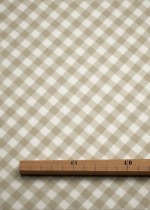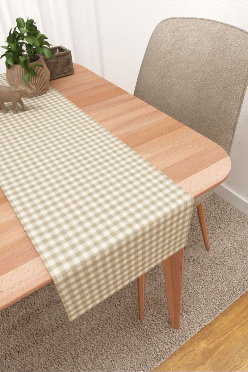 Warm und wohnlich wirkt der karierte Stoff in Weiß und Beige. Das gleichmäßige Muster sorgt für Ruhe und Harmonie, die Kontraste zwischen den Farben außerdem für eine abwechslungsreiche, lebendige Optik. Verwandte Erdfarben, satte Grün- und Rottöne sowie bunter Blumenschmuck setzen die Deko geschmackvoll in Szene.