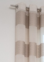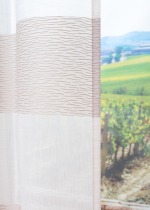 Beim ersten Eindruck erinnert das Muster dieses Vorhangs an ein klassisches Streifendesign. Bei genauerem Hinsehen erkennt man jedoch einen ganz besonders kreativen Kniff und zwar ein zusätzliches wellenartiges Motiv als Schmuckelement. Mit dieser lebendigen Ausstrahlung kann der Schal in nahezu jedem Raum eingesetzt werden. Dank der halbtransparenten Polyesterqualität bietet er vielfältige Anwendungsmöglichkeiten, im Wohn- wie im Schlafbereich. Der Vorhang lässt ausreichend Tageslicht durchs Fenster, gewährt trotzdem ein gewisses Maß an Sicht- und Blendschutz. Im Schein künstlicher Beleuchtung kann es abends jedoch zu mehr Einblicken kommen, als Sie es möchten. Die Ösen des Vorhangs sind metallisch verstärkt und ermöglichen eine schnelle Befestigung an einer Gardinenstange oder einem bereits vorhandenen Seilspannsystem. Durch einfaches Kürzen lässt sich der maschinenwaschbare, an Seiten und am Abschluss gesäumte Schal bequem auf die gewünschte Länge anpassen.