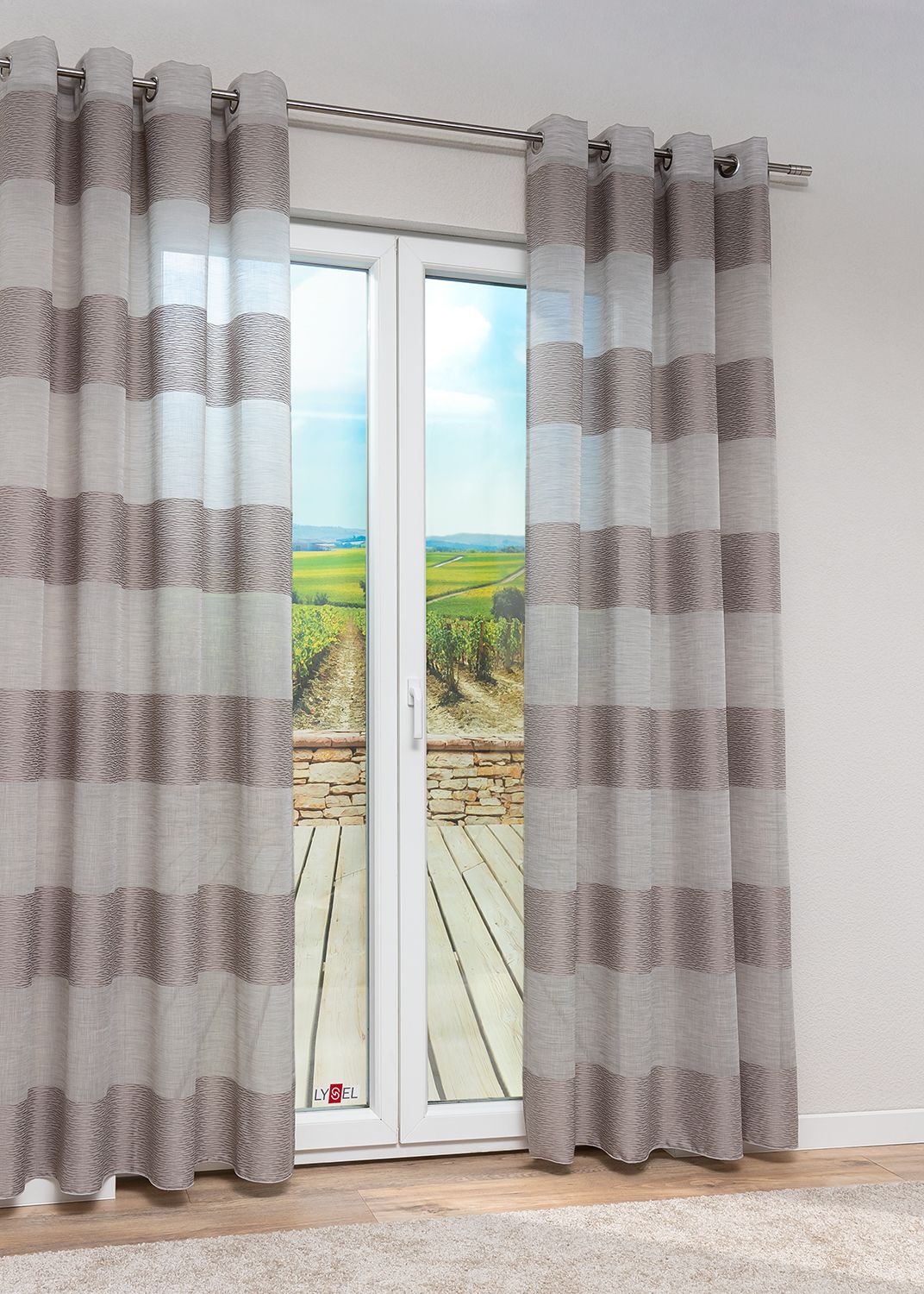 Beim ersten Eindruck erinnert das Muster dieses Vorhangs an ein klassisches Streifendesign. Bei genauerem Hinsehen erkennt man jedoch einen ganz besonders kreativen Kniff und zwar ein zusätzliches wellenartiges Motiv als Schmuckelement. Mit dieser lebendigen Ausstrahlung kann der Schal in nahezu jedem Raum eingesetzt werden. Dank der halbtransparenten Polyesterqualität bietet er vielfältige Anwendungsmöglichkeiten, im Wohn- wie im Schlafbereich. Der Vorhang lässt ausreichend Tageslicht durchs Fenster, gewährt trotzdem ein gewisses Maß an Sicht- und Blendschutz. Im Schein künstlicher Beleuchtung kann es abends jedoch zu mehr Einblicken kommen, als Sie es möchten. Die Ösen des Vorhangs sind metallisch verstärkt und ermöglichen eine schnelle Befestigung an einer Gardinenstange oder einem bereits vorhandenen Seilspannsystem. Durch einfaches Kürzen lässt sich der maschinenwaschbare, an Seiten und am Abschluss gesäumte Schal bequem auf die gewünschte Länge anpassen.