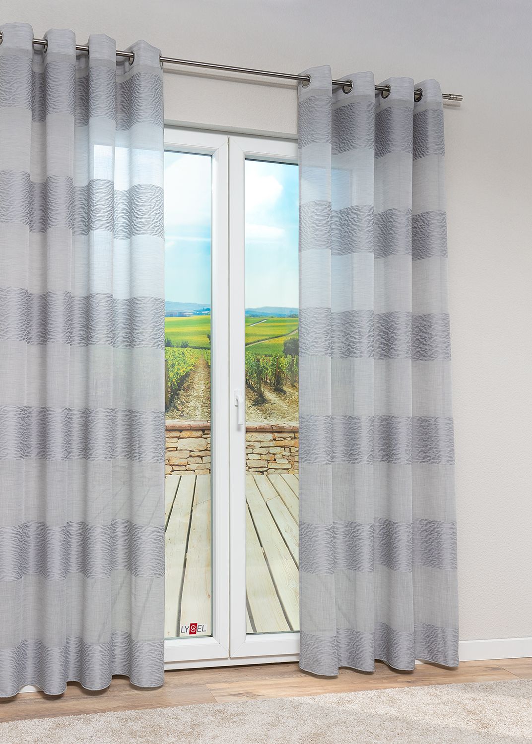 - Ein halbtransparenter Vorhang aus 100% Polyester.