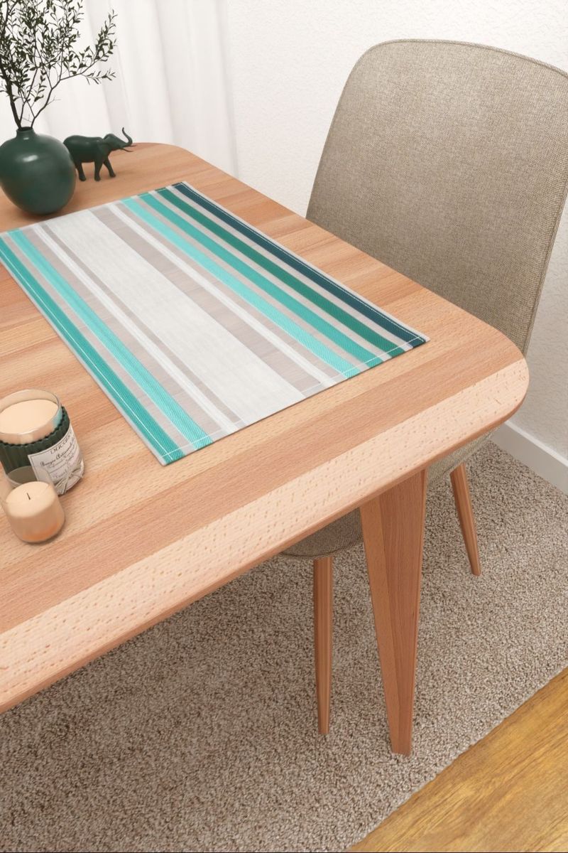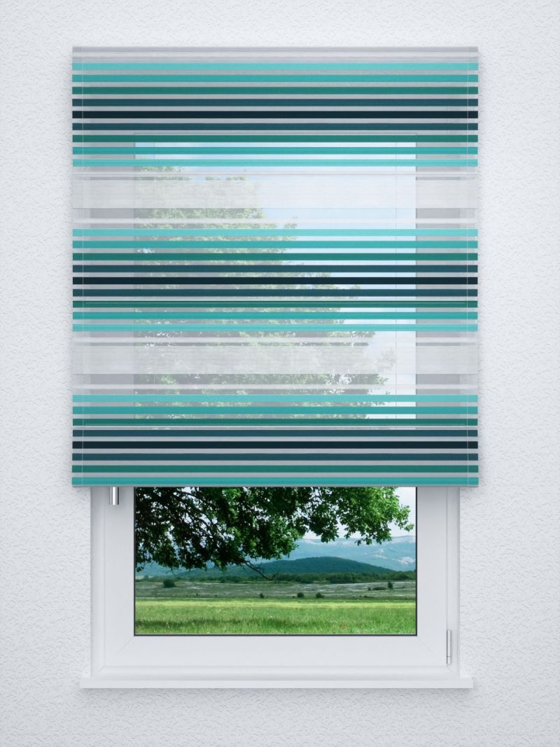 Seine türkise Optik lässt diesen Dekostoff kühl erscheinen, die Farbe wirkt dennoch erfrischend und belebend. Besonders für den Einsatz im Schlaf-, Wohn- oder Arbeitszimmer eignet sich diese Modellvariante hervorragend. Außerdem ist dieses schmückendes Wohnaccessoire in der Lage, enge Zimmer optisch zu vergrößern, egal, welchen Verwendungszweck Sie favorisieren.