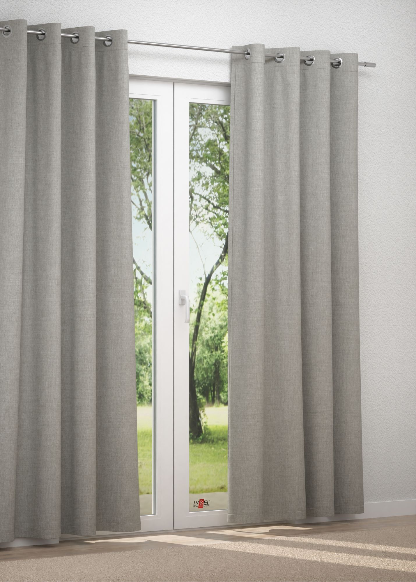 - Ein Ösenschal aus abdunkelndem Stoff, 100% Polyester - individuell nach Ihren Wunschmaßen gefertigt.
