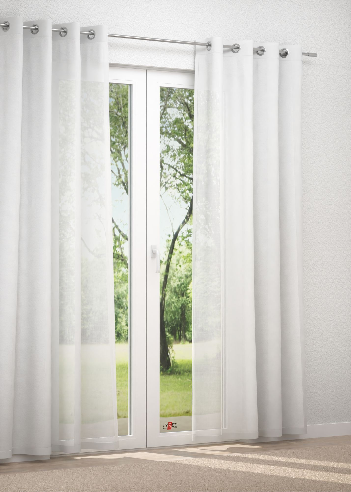 - Ein Ösenschal aus transparentem Stoff, 100% Polyester - individuell nach Ihren Wunschmaßen gefertigt.